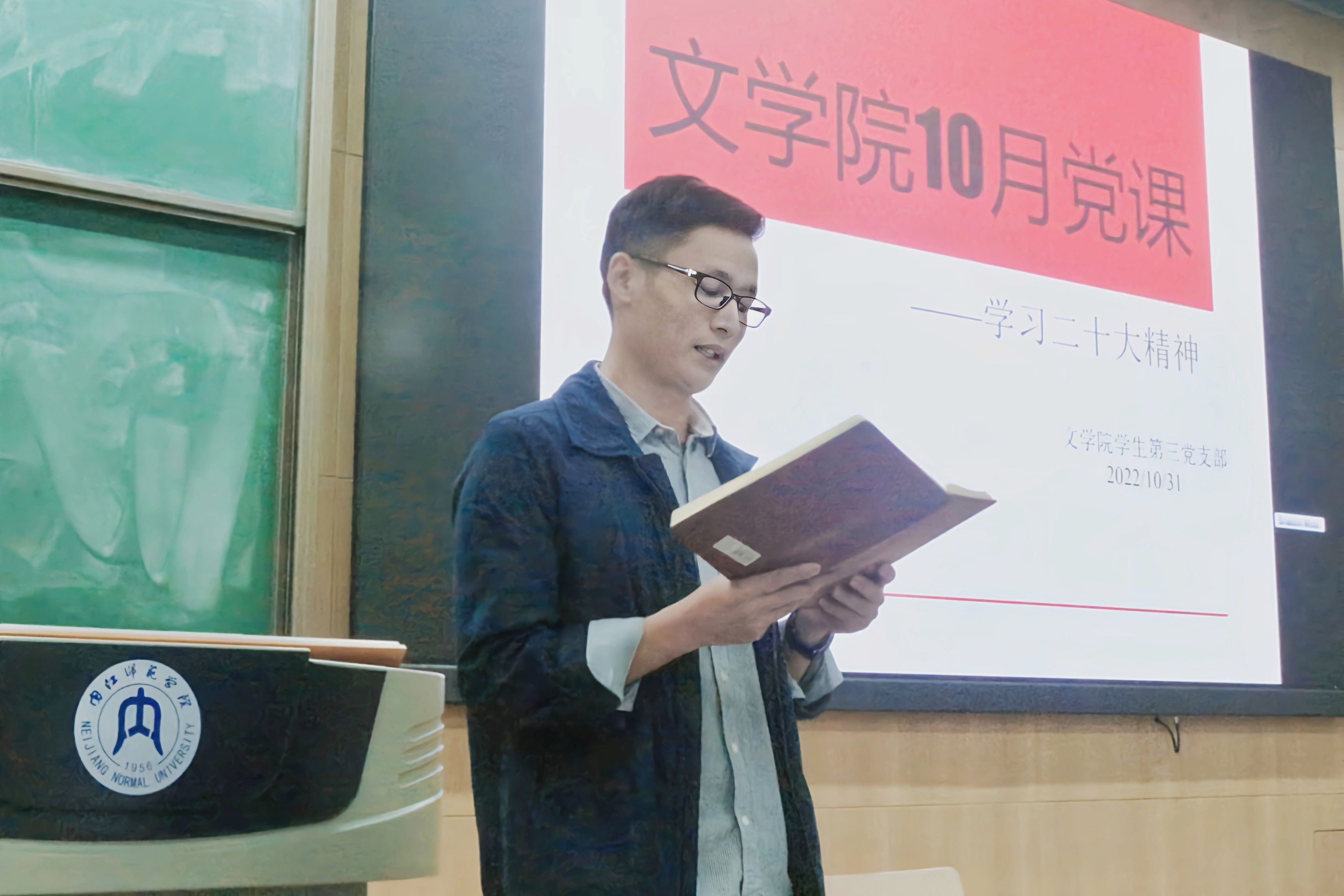 在第三党支部的党课中,甘成望老师强调,大家要深刻认识并坚定走好“五个必由之路”,走好中国特色社会主义道路。随后,甘老师指出,同学们今后应把学习贯彻党的二十大精神作为重要的政治任务,真正以报告精神武装头脑,在实践中感悟与成长。