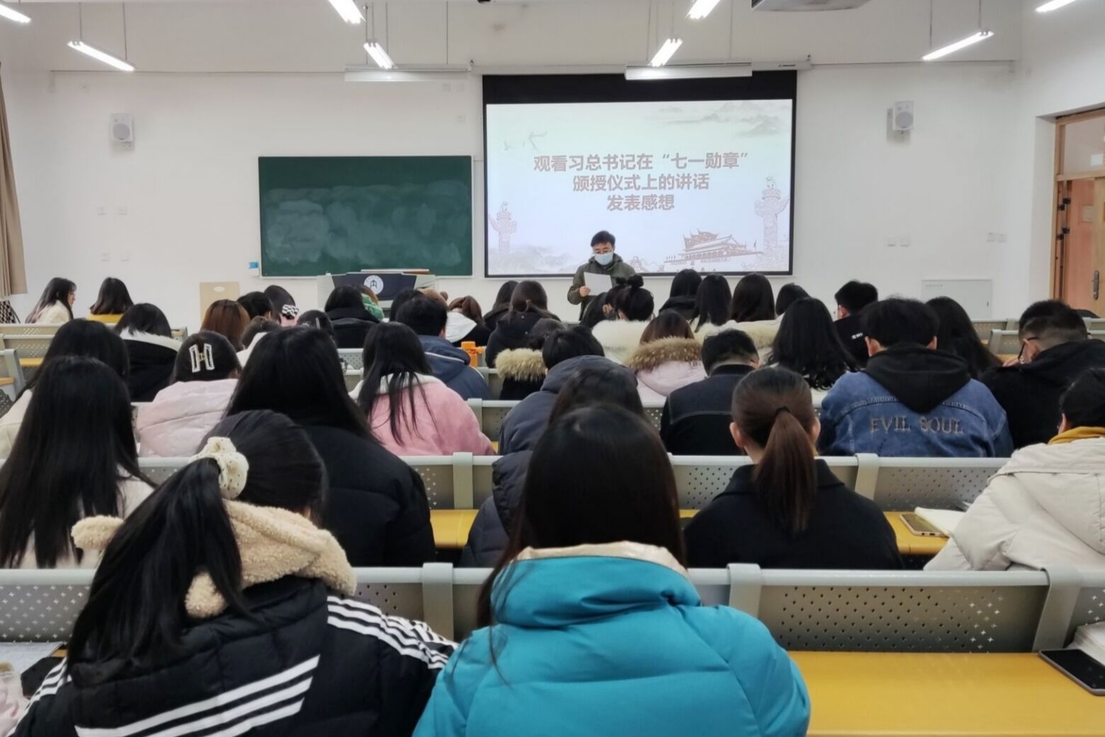 视频观看结束后,孙老师结合习近平总书记的讲话内容,再次强调了全体学生党员要认真学习和贯彻习近平总书记的重要讲话精神,大力弘扬建党精神。同时,他希望大家刻苦学习,努力掌握先进的科学知识,以党员先锋模范为榜样,努力提高自身的政治道德修养。同学们也积极发表自己的感想,表示自己要努力为人民服务,做一名优秀的共产党员。