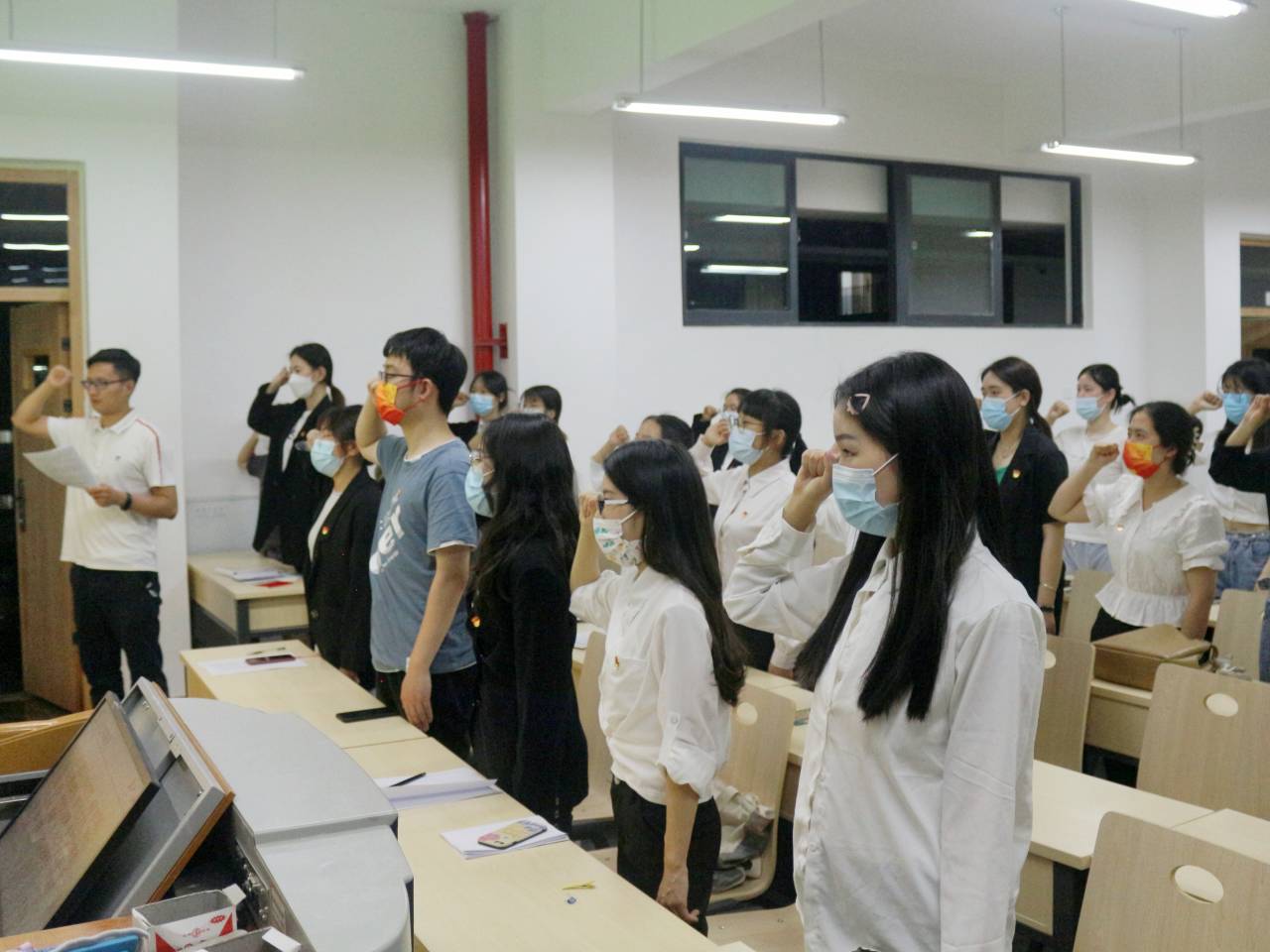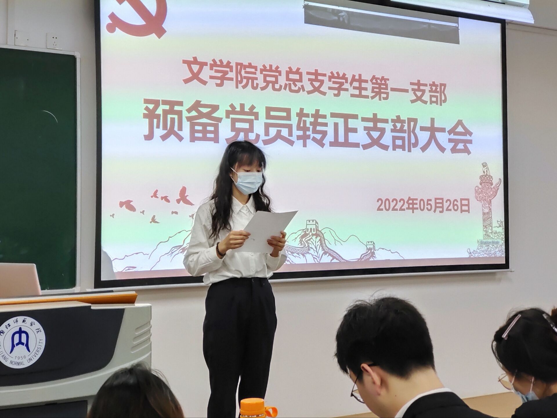 会议伊始,一支部预备党员黄金钰等15名同志进行了思想汇报工作,表明其坚决拥护共产党的领导,跟党走、听党话的决心。随后,黄金钰等15名同志的入党介绍人介绍了其在预备阶段的具体情况。紧接着,学生第一支部书记金夏代表支部委员会报告了黄金钰等15名同志在预备期间的教育考察情况。与此同时,学生第二支部书记汤靓、学生第三支部临时负责人甘成望也对其支部各预备党员进行了考察情况汇报。接下来,各党员同志以无记名投票方式进行了表决,全票通过了黄金钰等35位同志按期转正的决议。其中,徐海洋同学延期转正为正式党员。会议的最后,一支部熊彬涵同志作为转正党员优秀代表进行发言,表示自己将会对党永葆忠诚之心,努力学习,不忘入党初心,以优秀共产党员身份严格要求自己,不断提高党性修养,充分发挥一名共产党员的先锋模范作用。