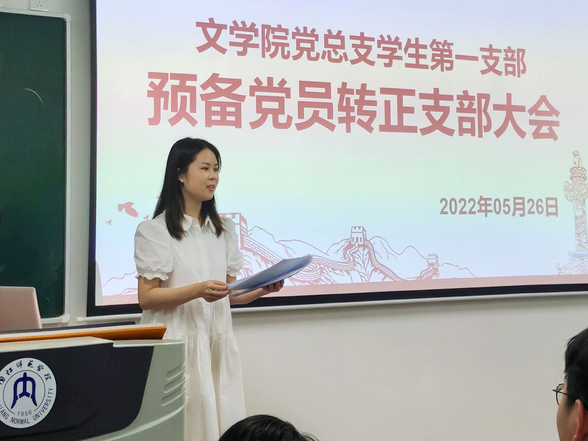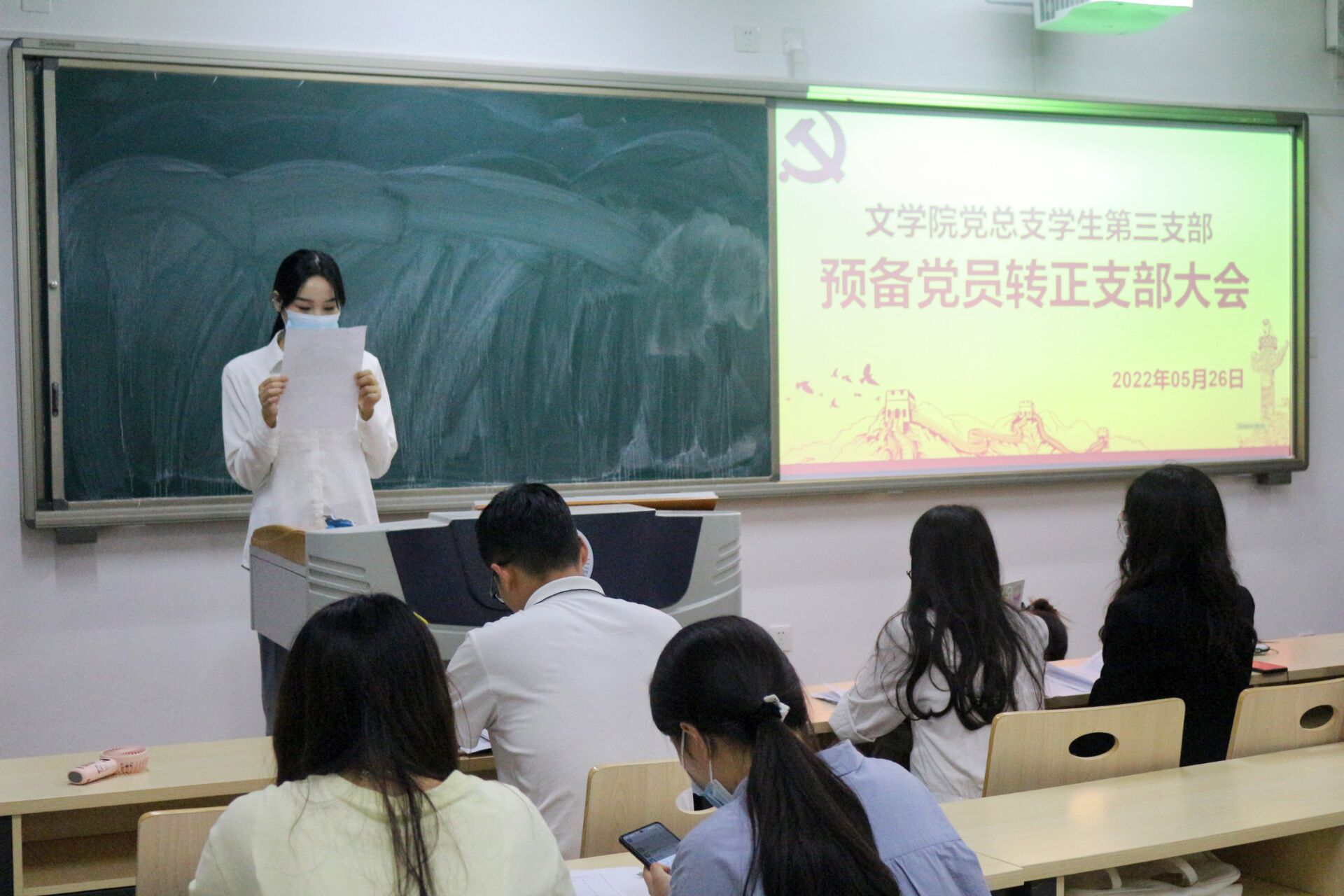 为做好发展党员工作,进一步加强党员队伍建设,我院各学生党支部于5月26日晚上7点分别在明德楼B区303、304和305教室召开预备党员转正支部大会。我院党总支副书记周艺(主持工作),党总支副书记刘正丽,学生第一支部书记金夏,学生第二支部书记汤靓,学生第三支部临时负责人甘成望,全体党员、预备党员、发展对象共同参与此次大会。