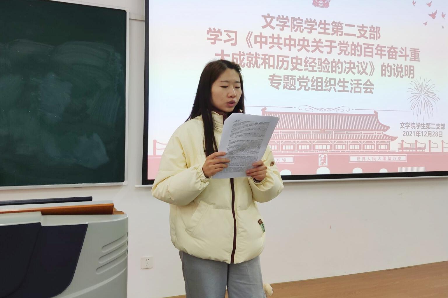 最后,汤老师对此次党组织生活会进行总结,希望大家能将《决议》精神牢记于心,积极落实到学习、生活和工作中去。