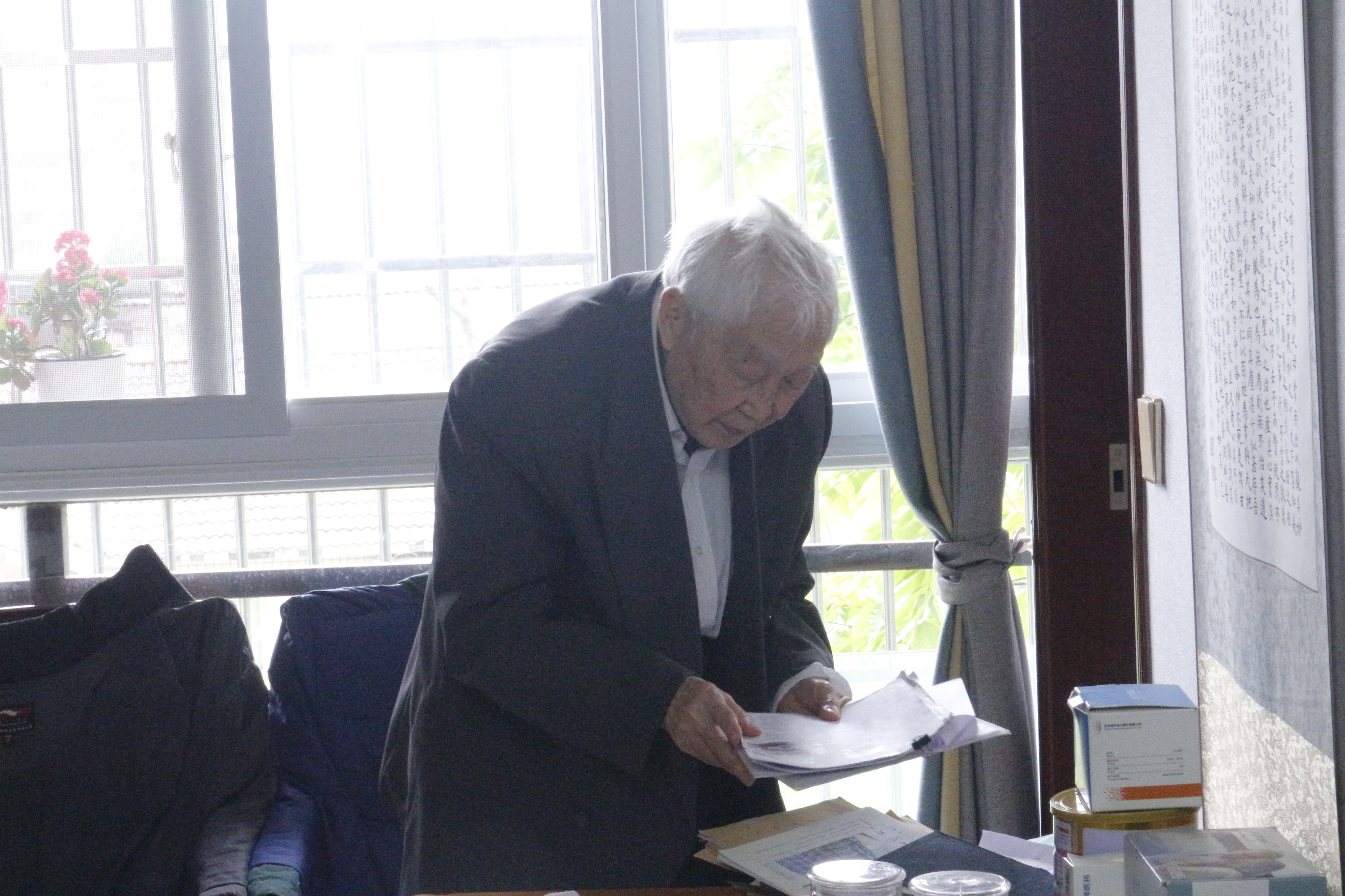 襄笃老师是一名拥有68年党龄的老党员,在谈到当初的入党动机时,刘老师眼泛热泪,他感激党的培养,感激党带给人民的幸福生活。在他看来,中国共产党就是他一生的追求,也是党赋予了他信仰,给予了他温暖。他认为我们应该树立正确的理想信念,听党话,跟党走。将自己的人生价值建立在对社会,对国家的贡献上。