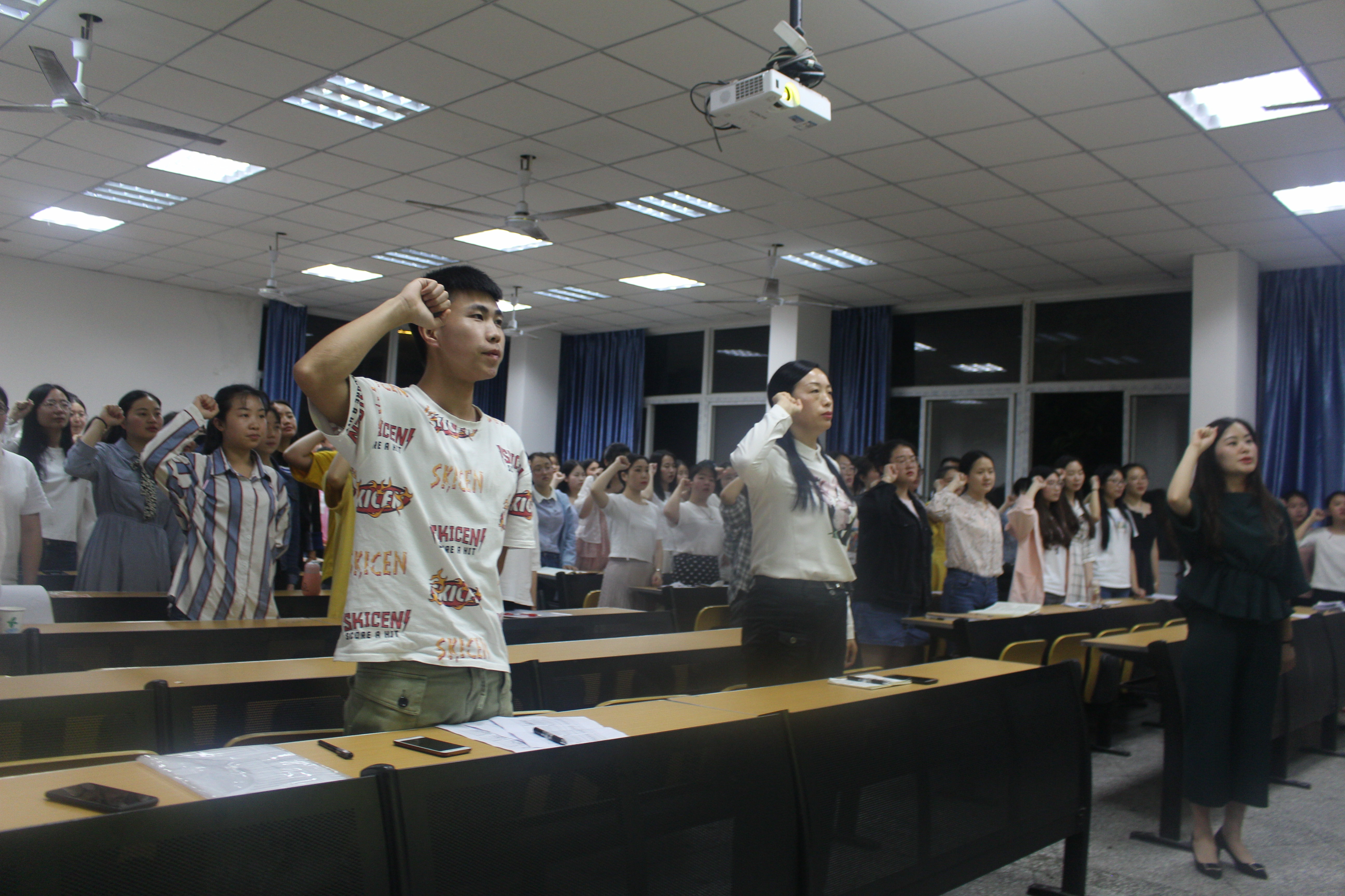5月15日晚,学院党总支预备党员转正支部大会在中文楼203教室召开。党总支书记覃华艳同志莅临本次大会,本次大会由第一、第三学生党支部书记陈怡君同志主持,学生党支部全体正式党员及预备党员参会。