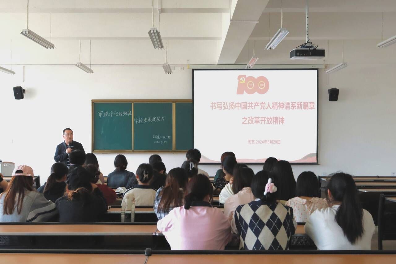 为促进我院学子深入理解中国共产党在新时代的历史使命和精神谱系,激发我院学子的创新意识和奋斗精神,3月29日下午2点30分,我院于弘文楼502会议室组织召开了以“书写弘扬中国共产党人精神谱系新篇章之改革开放精神”为主题的党课。本次党课由我院党委书记周艺主讲,2021级7班全体学生参与。
