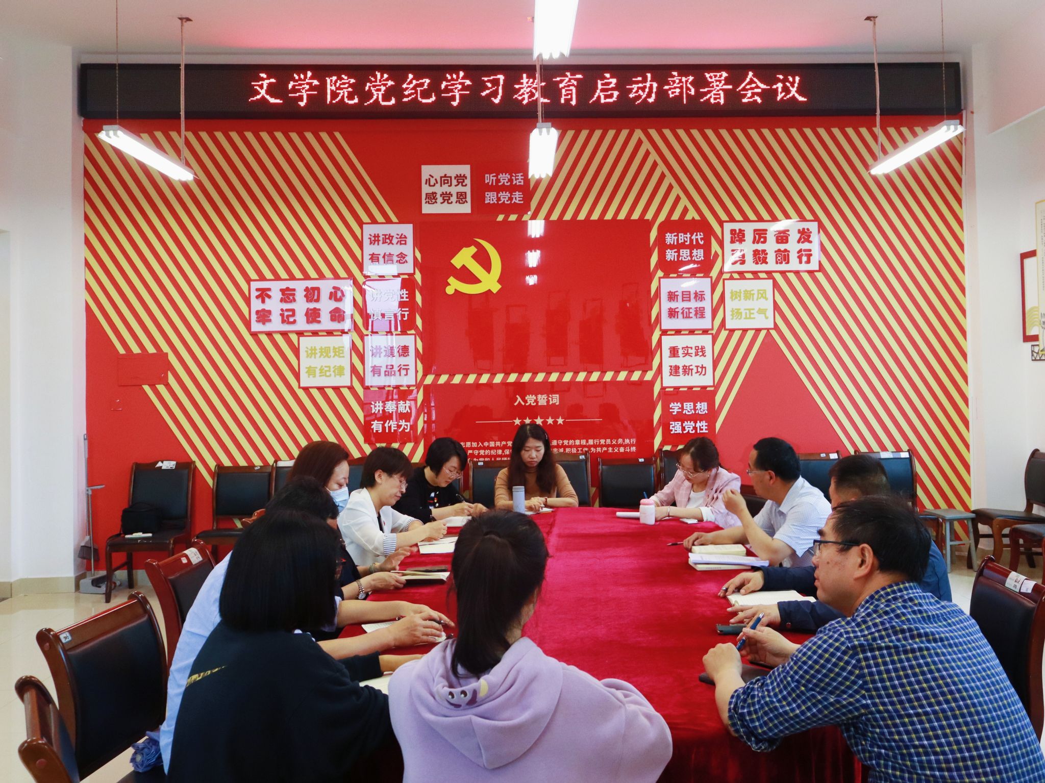 4月16日上午10点,文学院在弘文楼506召开了党纪学习教育启动会,会议由学院党委书记周艺主持。