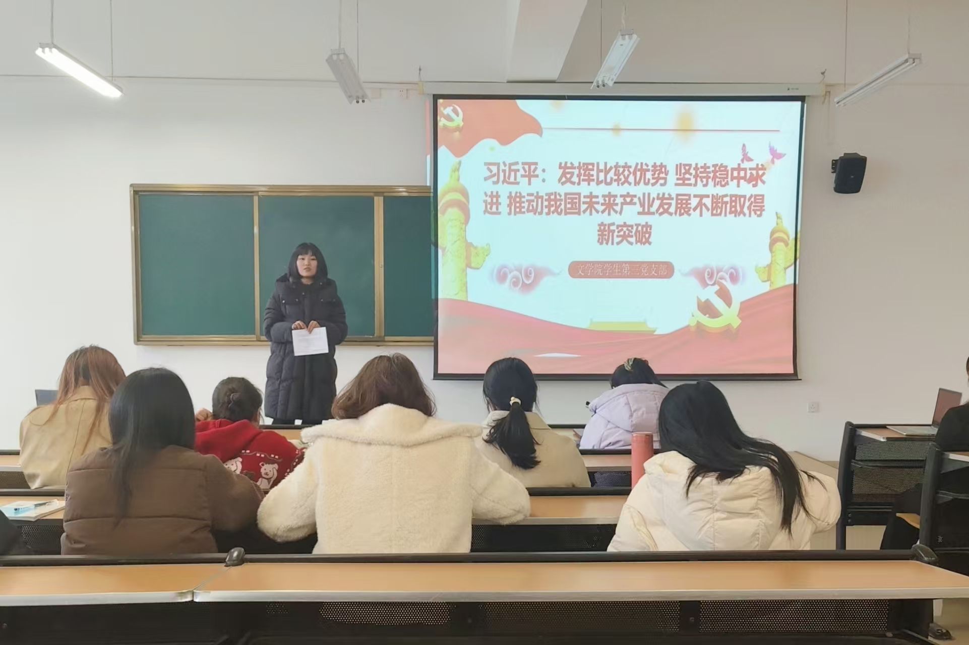 授课过程中,雷业老师结合青年学生成长成才实际,勉励全体支部成员树立远大理想,培养创新思维,锤炼过硬本领,主动关注科技前沿和产业发展趋势,把专业学习与国家需求紧密结合,努力成长为适应未来产业发展需要的高素质人才。她强调,要勇于创新、敢于实践,在学习中增长知识,在实践中锤炼品格,努力成为可堪大用、能担重任的栋梁之才,为我国未来产业发展贡献智慧和力量。全体成员认真学习、深入思考,切实把讲话精神内化于心、外化于行。