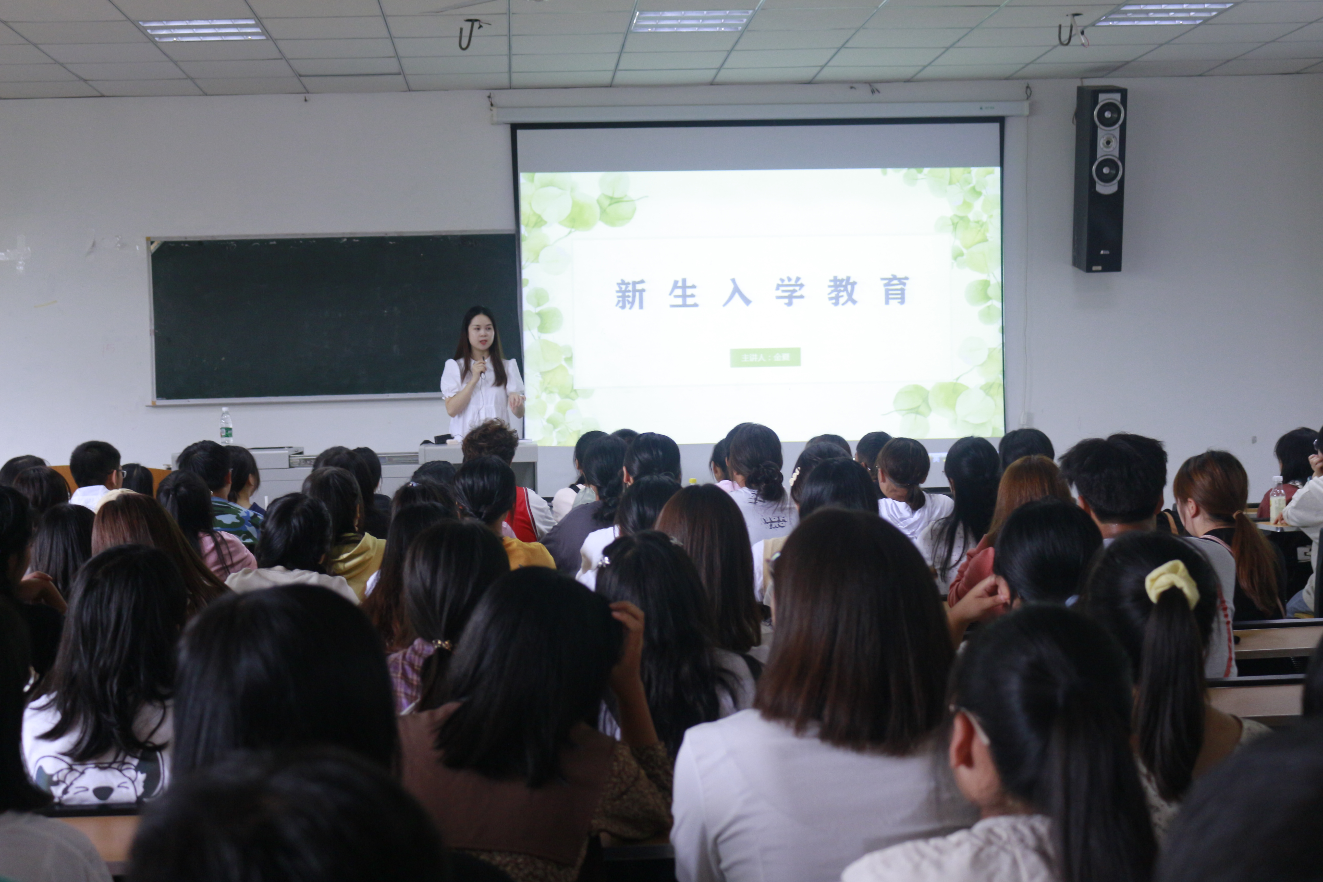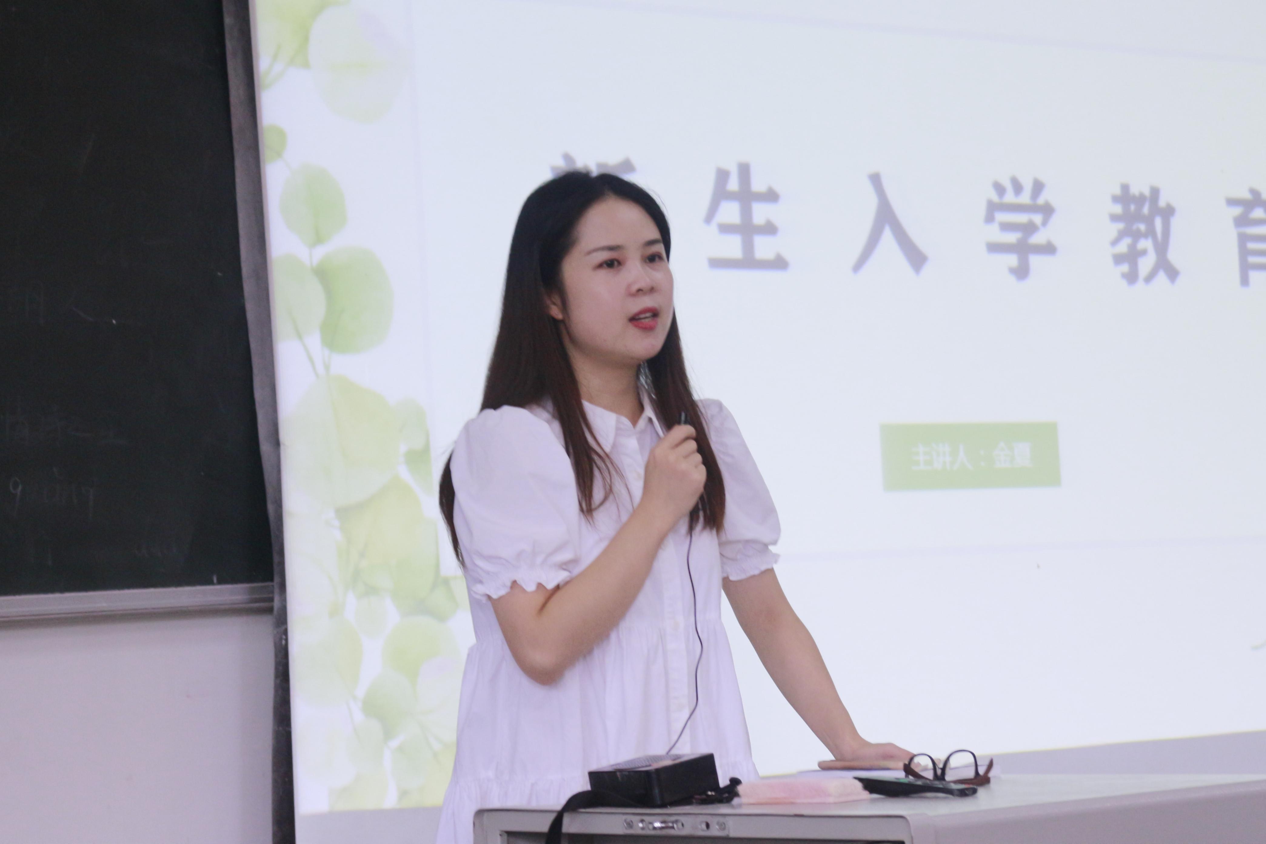 首先,金夏老师对全体新生进行了“爱国主义、校规校纪和诚信感恩”为主题的入学教育。她播放了爱国主题纪录片,并详细地向同学们讲述了“什么是爱国主义”、“当代大学生如何弘扬爱国主义精神”等问题,积极引导大家树立正确的世界观、人生观和价值观。紧接着,她为同学们讲述了我校校规校纪的主要内容,并从给予纪律处分的情形、原则等问题进行了讲解。在诚信感恩教育方面,她呼吁同学们无论是在学习还是生活中都要与诚信和感恩为伴,争做新时代有责任有担当的好青年。