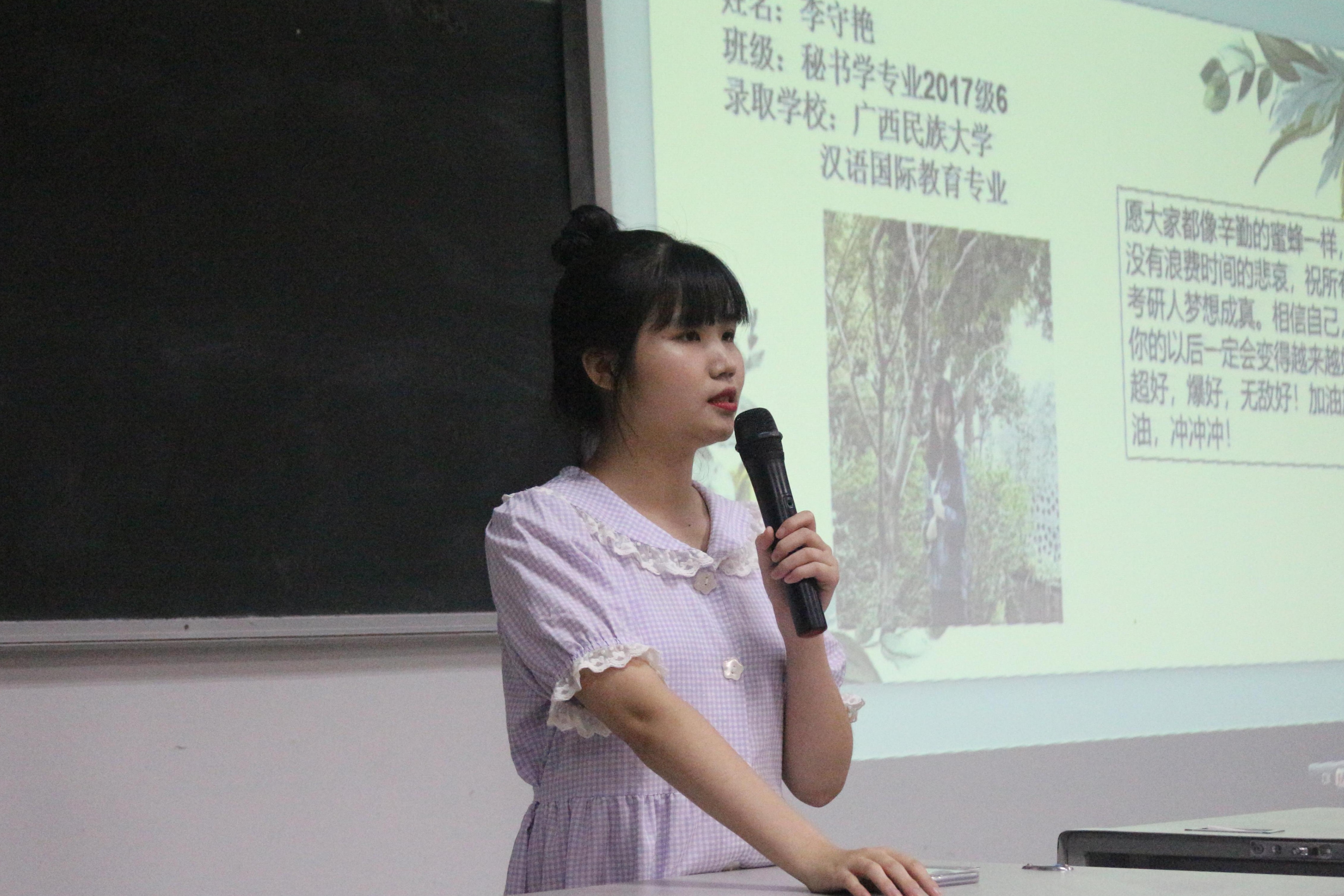 为让同学们了解到更多的考研信息,加深对于考研学习的认识。我院于6月17日晚上7点在中文楼304教室举办文学院2021届毕业生考研交流会。我院党总支副书记刘正丽出席此次会议,2018级、2019级、2020级部分同学积极参与。此次会议由刘红、冯玲芝、李守艳等五名考研同学担任主讲人,由主持人队张琪浩担任主持人。