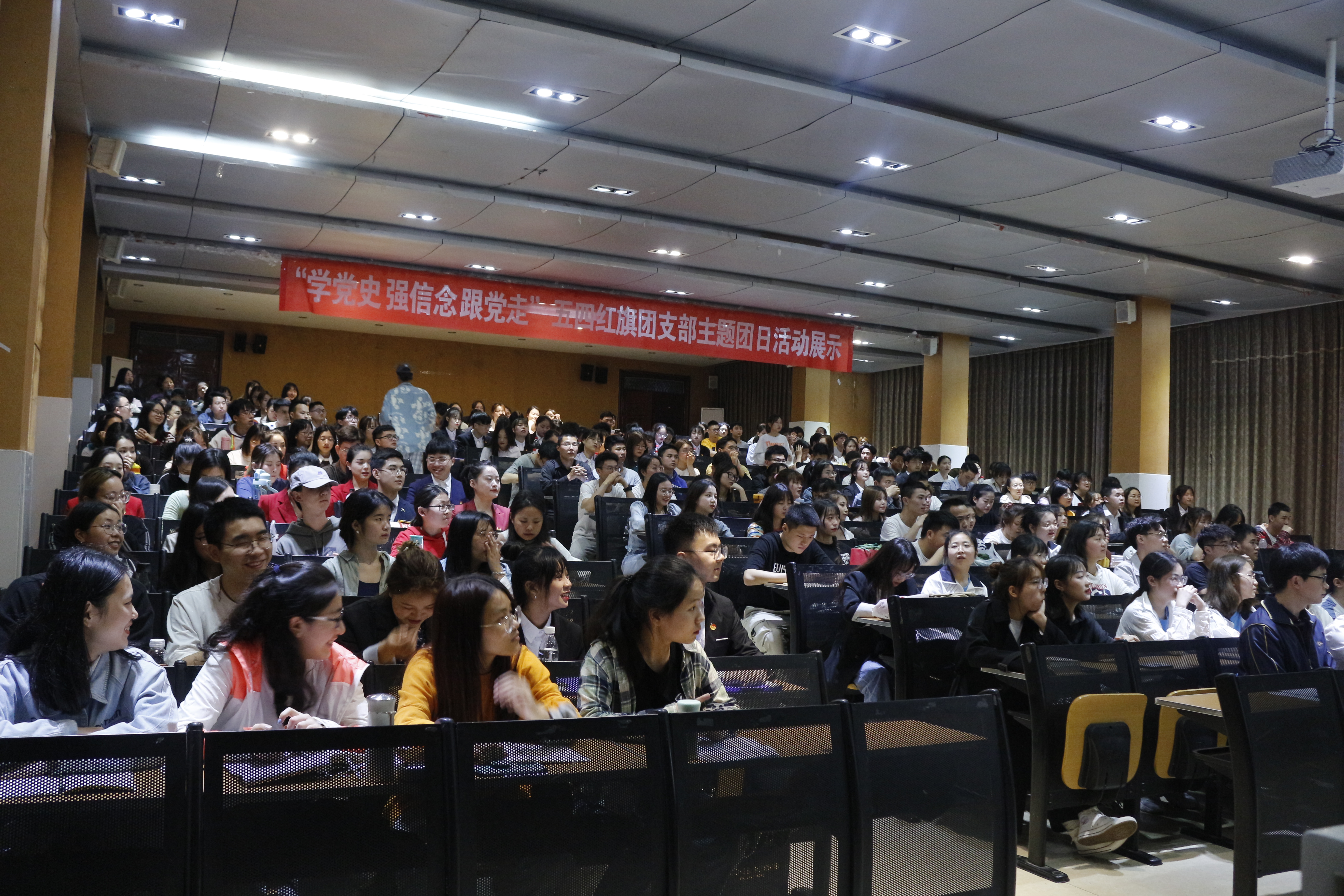 为进一步贯彻落实习近平新时代中国特色社会主义思想,提升团组织创造力和引领力,4月22日晚上7点,我校于第二学术报告厅组织了内江师范学院五四红旗团支部主题团日活动展示活动。校党委组织部付雪兵,校党委宣传部张樑,校团委组织部李耀洲,后勤处郭林出席本次活动,我院2018级4班参与汇报展示,柏涵膑、赵佳楠担任主讲人。