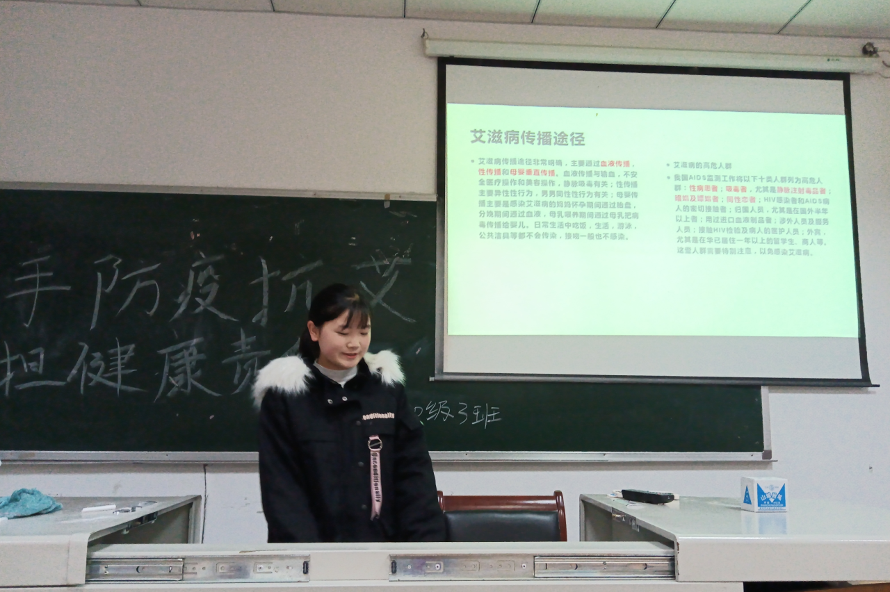 寒风阵阵,难挡爱的温暖。在第33个世界艾滋病日到来之际,我院各班开展了“携手防疫抗艾,共担健康责任”的主题班会。
