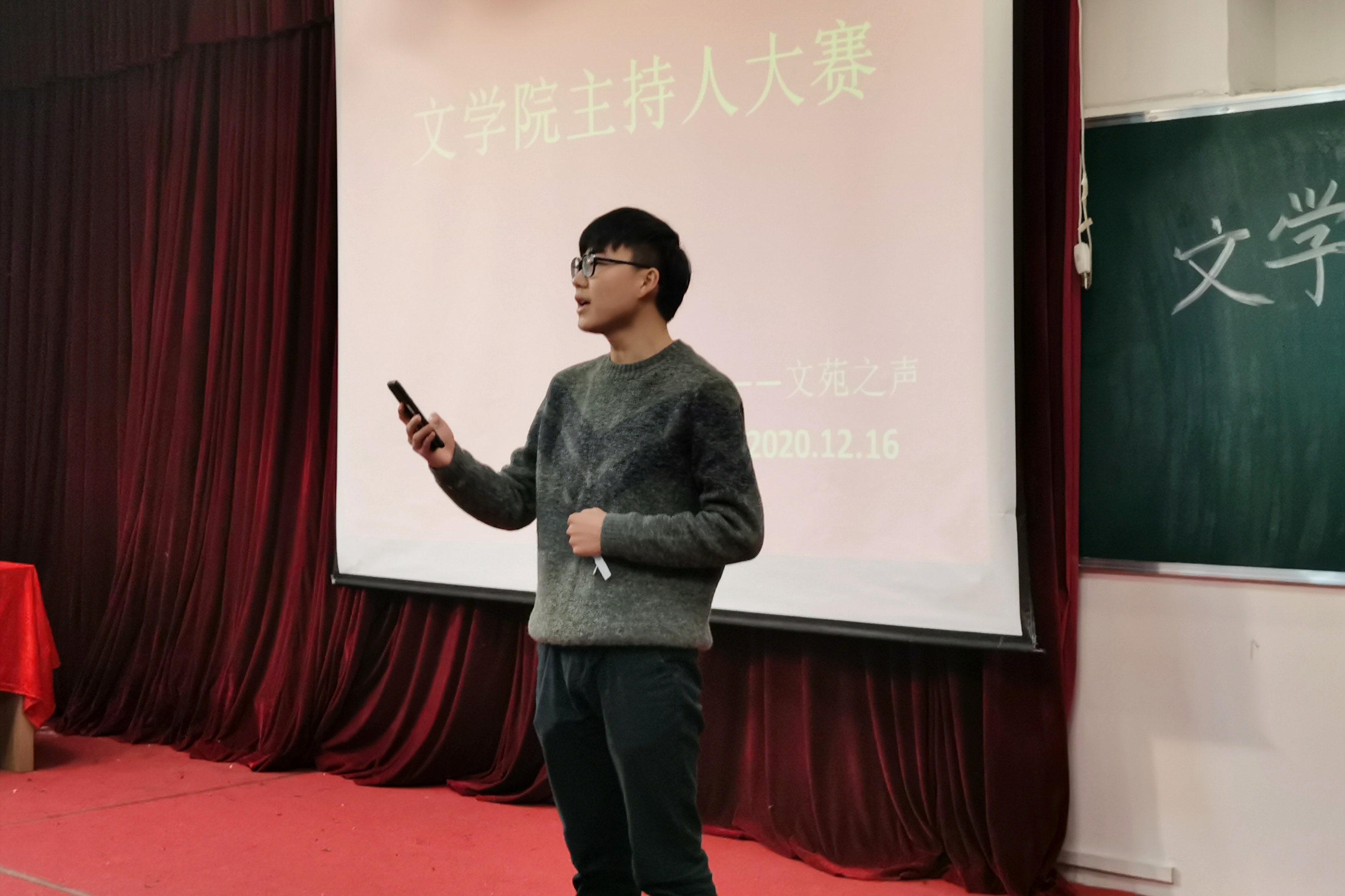 12月16日中午12点,我院主持人大赛在中文楼501多媒体教室举行。此次比赛由新闻学院胡维晗,我院学生会执行主席罗杰铃、年春美,我院朗诵队队长赵佳楠担任评委;我院2018级、2019级、2020级部分同学参赛。此次比赛由主持人队胡学琨主持。