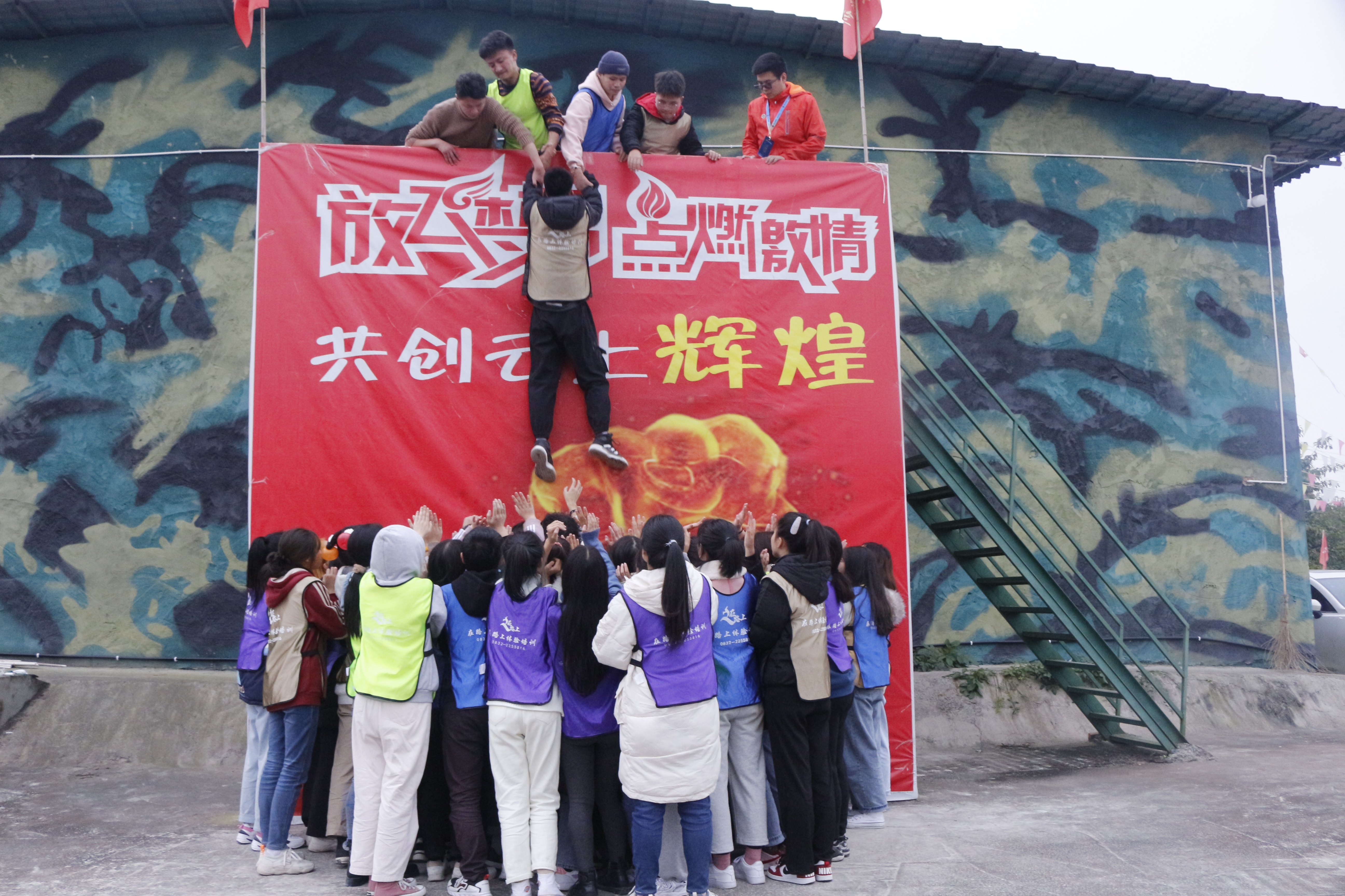 最后,进行本次素质拓展的最后一个环节,四个小队集体翻越一座四米左右高墙。这是一个看似不可能完成的任务,没有任何保护设施,只有无数队友在身后伸出双手保护着同伴。但大家并没有轻言放弃,在不断的尝试、不断的努力后,最终大家都获得了成功。有的人甘愿在最底层作支撑,有的人在上方奋力地拉动队友翻越这面墙。在这场博弈中,谁也没有气馁,凭借着勇气和毅力坚持到了最后。