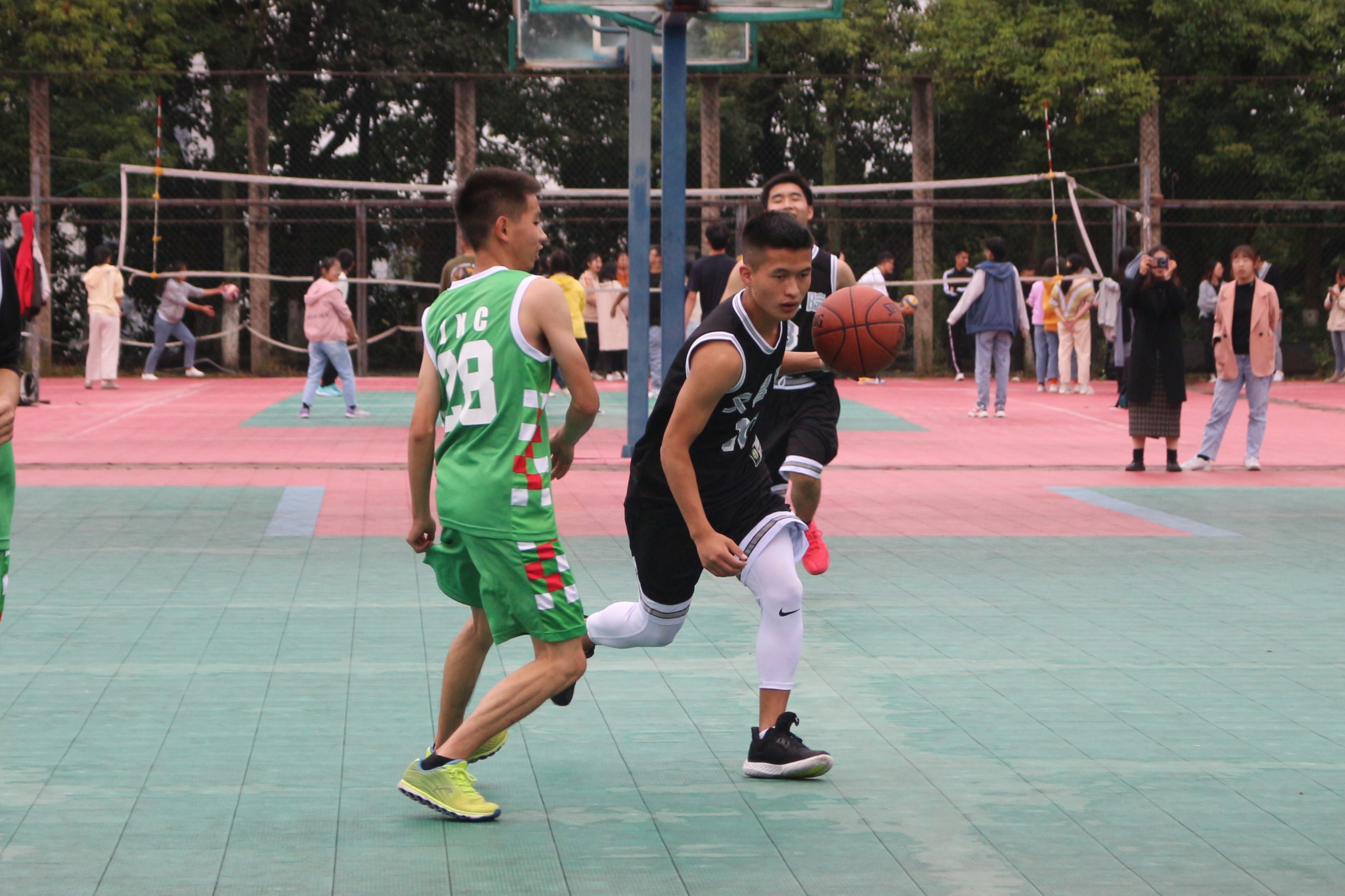 下半场,比赛进入白热化阶段,双方紧咬比分,在赛场上你追我赶。暂处劣势的C队队员毫不气馁,以饱满的激情重新投入新一轮的战斗中,多次上篮得分,将整场比赛推向高潮。虽然D队一队员不慎滑倒,但双方队员不分彼此的关心,给清凉的冷风增添了一丝丝暖意。紧接着,D队两次拿下三分球,再次拉开比分。C队队员不甘落后,全力反击,以顽强的防守限制D队得分。哨声响起,这场激动人心的比赛落下帷幕。最终,2020级C队以30:49的比分惜败于2020级D队。在比赛中,双方队员始终保持着拼搏精神,永不言弃,赛出了风格,赛出了水平。
