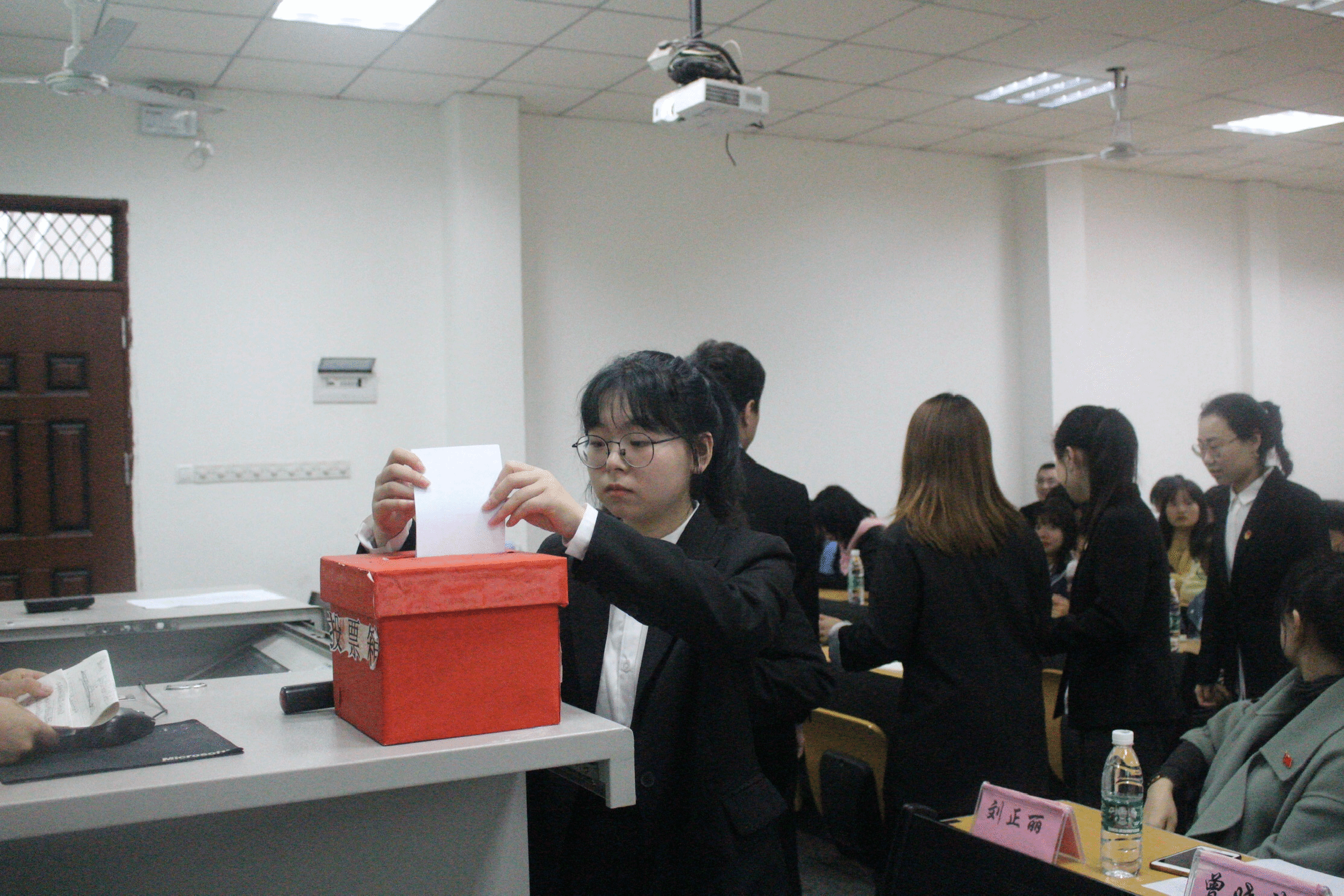 大会正式进行第一项议程。我院第四届科技实践部负责人罗杰铃代表我院第四届团总支学生会作总结工作报告,对过去一年的团总支学生会工作做出了客观、全面的总结,还对学生会的自身改革与开展活动进行了清晰汇报。紧接着,大会听取并审议了第一届学生代表大会筹备工作报告与资格审查报告。在宣读第一届学生代表大会选举办法、通过《监票人、计票人》名单后,接着开展了正式代表选举工作。本次选举秉承公开、公平、公正的原则,以不记名方式进行选举。监票人赵珊珊取票后,给各代表分发选票。各代表填写好选票后,依次放入投票箱中。最后计票人李新打开投票箱,统计各候选人票数。最终罗杰铃、年春美当选为第五届团总支学生会执行主席;陈新雨、徐丹妮等十三名同学当选为我院第一届学生正式代表。本次大会在旋律悠扬的校歌声中圆满结束。