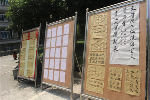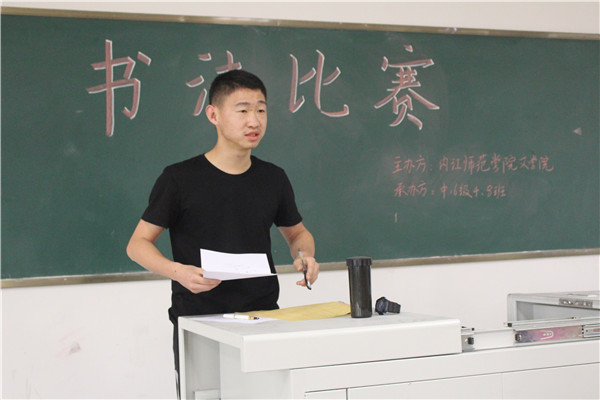 下午六点,比赛准时结束,各位参赛选手把自己的作品交给各班班长,再由评委赛后评分。本次比赛既展现了文学院学子的书法水平,又加强了两个班之间的感情。