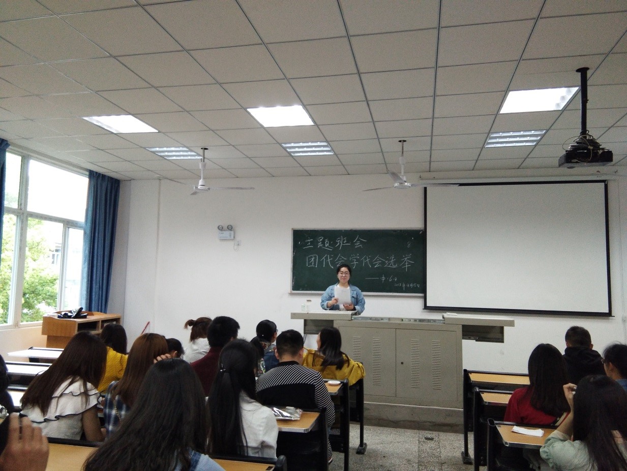 在会上,各班对两代会的内容进行了简短的介绍。本次团代会选举两名代表,学代会选举一名代表。选举方式为提名选举,除提名同学外全班同学参与投票。在明确两代会代表职责和义务之后,同学们积极的参与到两代会代表的竞选与投票中。经过各班级团支部成员的投票选举,各班均选出两名团代会代表、一名学代会代表。