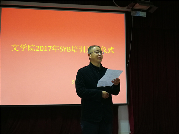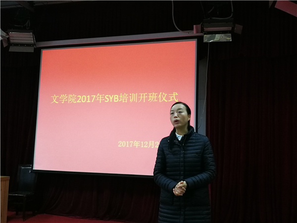2017年12月2日早上8点,我院2017年最后一批SYB培训班开班仪式在中文楼501教室召开。内江市高级技工学校李校长、文学院副院长刘云生、党总支副书记覃华艳出席本次仪式,120名参训学员参加此次仪式。开班仪式由学工办副主任许小涛主持。