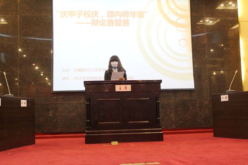 2016年11月6日下午3点30分,由共青团内江师范学院委员会主办、政治与公共管理学院承办的以“庆甲子校庆,颂内师华章”为主题的辩论赛复赛第四场在内江师范学院多功能会议室隆重举办。参加本次辩论赛的双方是文学院辩论队和政管学院辩论队,比赛特邀校辩论队队长段然,原校辩论队组织部部长孟娇,原校辩论队队长陈思颖,2014年校辩论赛全场最佳辩手杨怡和经管学院辩论队队长姚润担任嘉宾评委。由政管学院学生李思思担任本场主席。