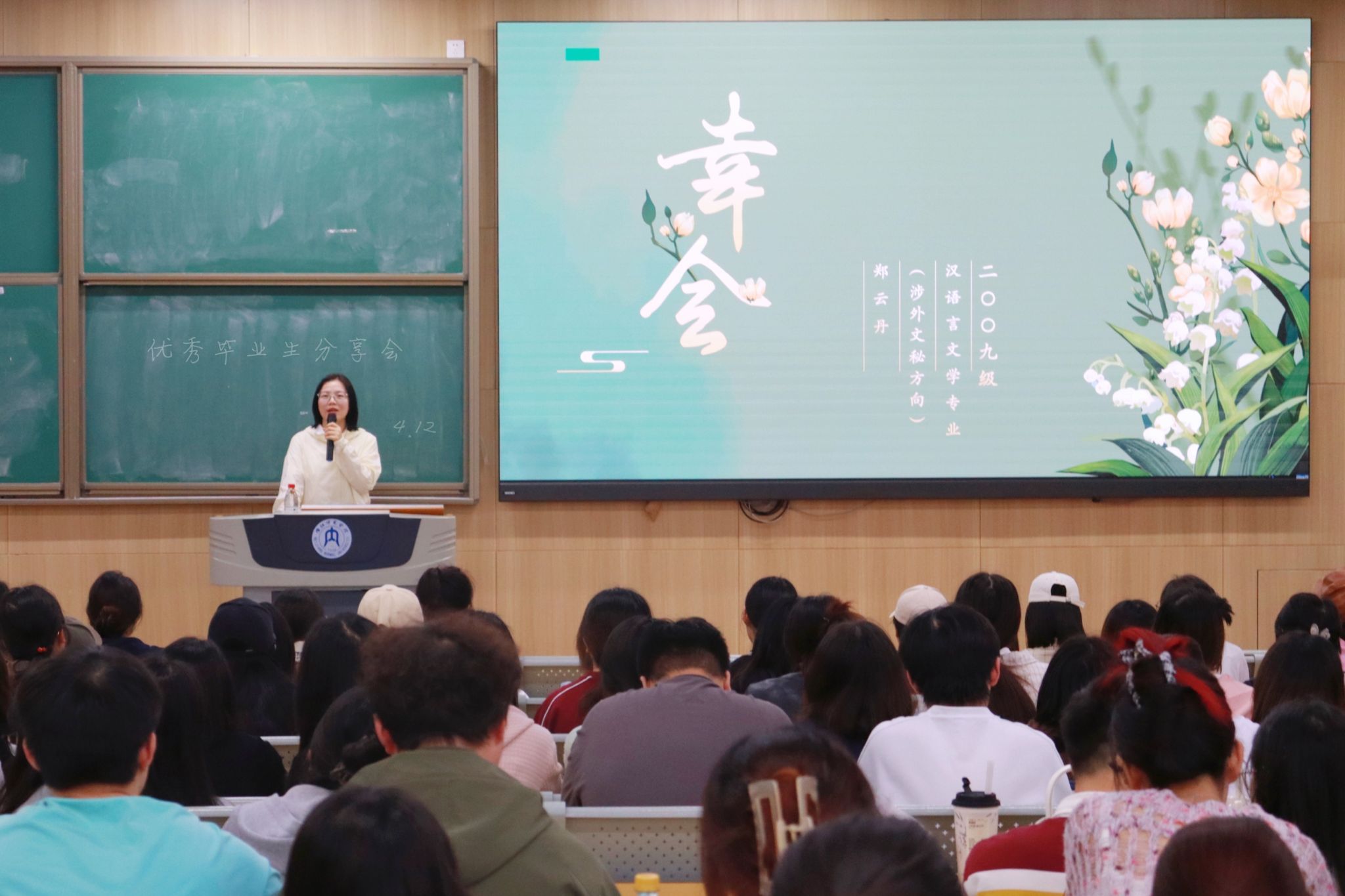 为了充分发挥优秀毕业生的榜样作用,增强我院学子的学业规划与职业发展意识,4月12日晚上7点,我院于明德楼B区111教室召开优秀毕业生分享会。本次分享会由我院2009级优秀毕业生郑云丹主讲,我院党委书记周艺,党委副书记、纪委书记刘正丽,学工办辅导员汤靓、雷业老师及2021级全体同学共同参加。
