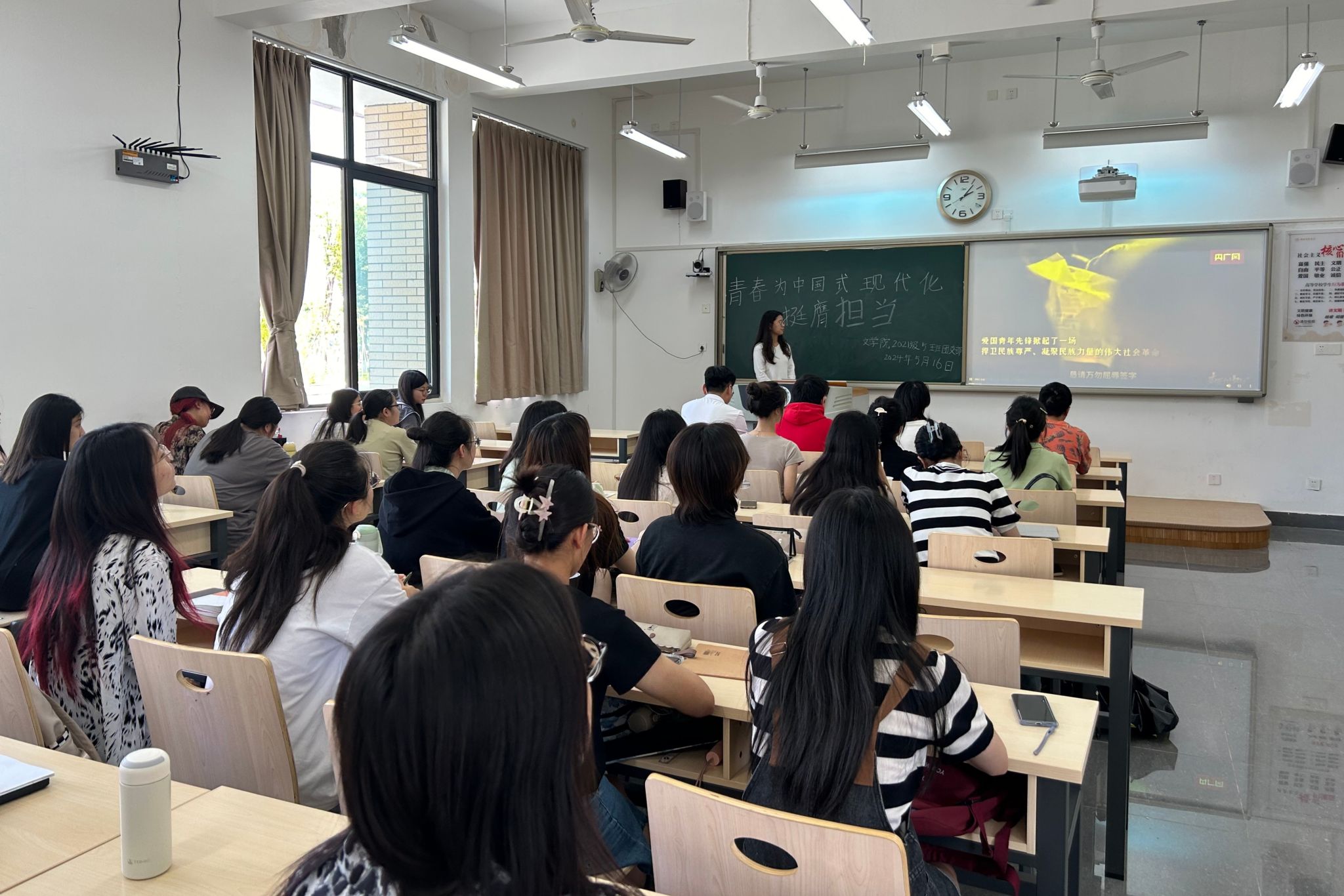团会伊始,各班团支书带领大家齐唱团歌《光荣啊,中国共青团》,重温入团誓词,并介绍本次团组织生活会的主要内容。随后,大家共同学习了文章《习近平向全国广大青年致以节日祝贺和诚挚问候》、《新华社评论员:书写为中国式现代化挺膺担当的青春篇章》,团员青年们就文章的学习心得交流互鉴,深入理解了文章内容,领悟文章内涵。紧接着,全体成员共同观看视频《有一种骄傲,叫“中国青年”!》,同学们深受启发,更加坚定了自己的奋斗目标和人生理想。团会最后,各班团支书组织开展了关于五四精神的知识问答,大家踊跃参与、积极作答,在答题过程中加深了对五四精神的认识和理解。