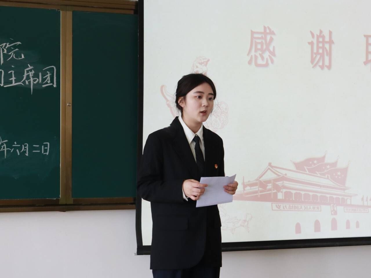 为锻炼我院学子组织能力和团队意识,为学院日常管理和学生服务注入新的活力,6月2日下午两点,我院在明德楼B区211、212教室召开第九届团总支学生会换届选举大会,我院学工办副主任金夏老师,我院学工办辅导员汤靓、雷业老师,第八届团总支副书记(学生)王睿,第八届团总支学生会执行主席熊洲澜,第八届团总支学生会主席团成员彭雪怡、谌传昊以及全体负责人担任评委,部分志愿者参与竞选,文苑之声熊思琪、周钰淋担任主持。