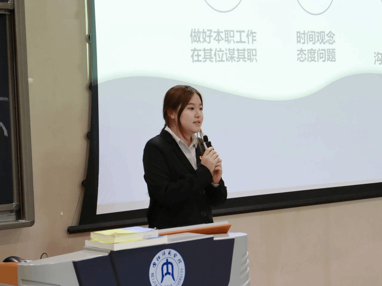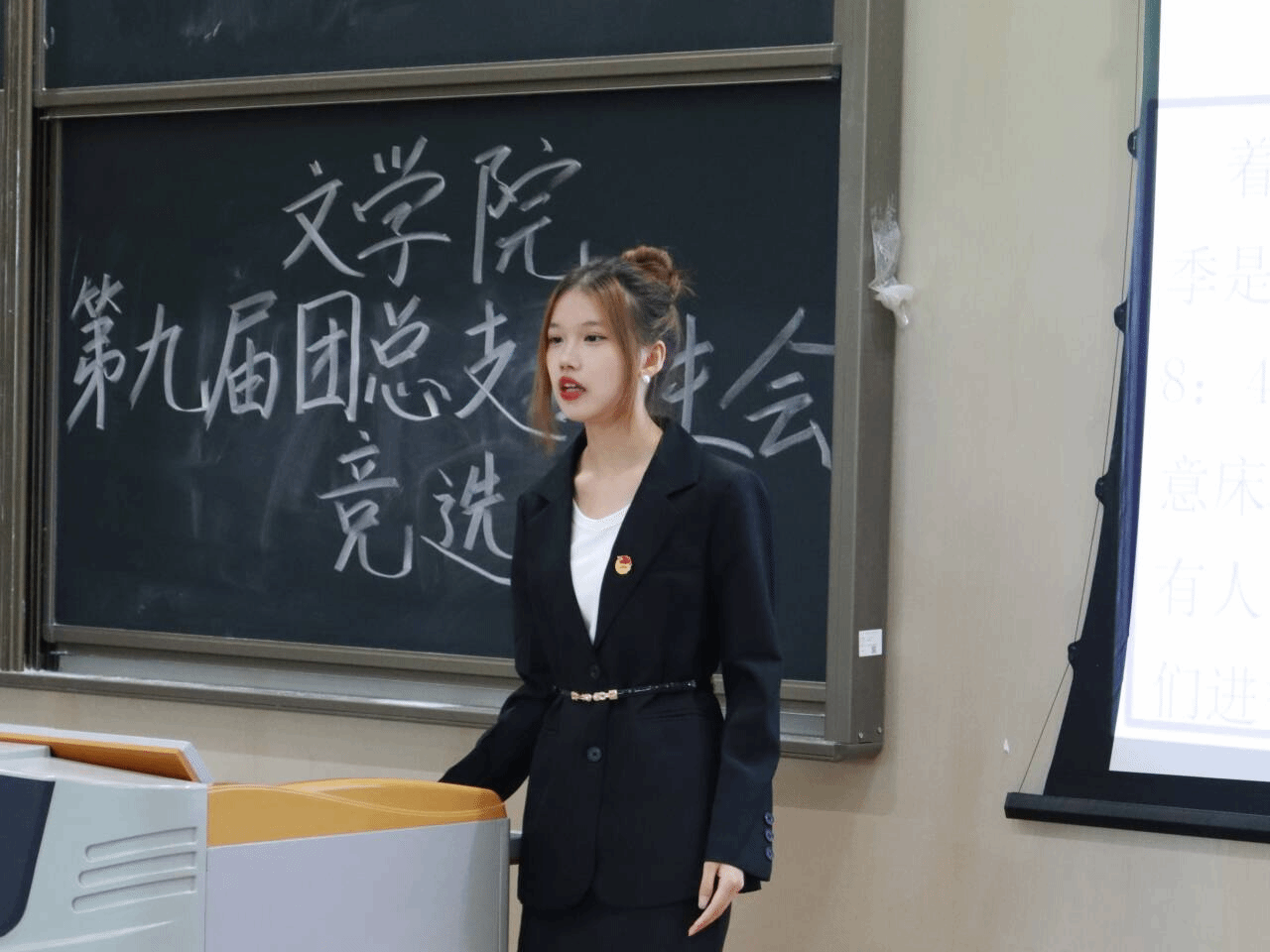 大会在庄严的国歌声中拉开序幕。会议伊始,主持人宣读了大会须知和各部门负责人候选人名单。紧接着,各位候选人依次上台进行竞选演讲,他们结合自身经历与特长,既回顾了过去一年的工作成果,也提出了对未来部门建设的规划。候选者们许下承诺,将会以实际行动践行责任与使命,共同谱写文学院团总支学生会发展新篇章,与我院同学一起创造更加美好的校园生活。同学们的精彩表现赢得了在场师生的阵阵掌声。大会最后,金老师强调,换届是新的起点亦是新的征程,新一届负责人应肩并肩,共同面对挑战,开启新一轮奋斗。汤老师则提出,新一届团总支学生会成员干部应要更加注重与我院学子的联系和沟通,深入了解同学们的需求和意见,积极为同学们排忧解难。