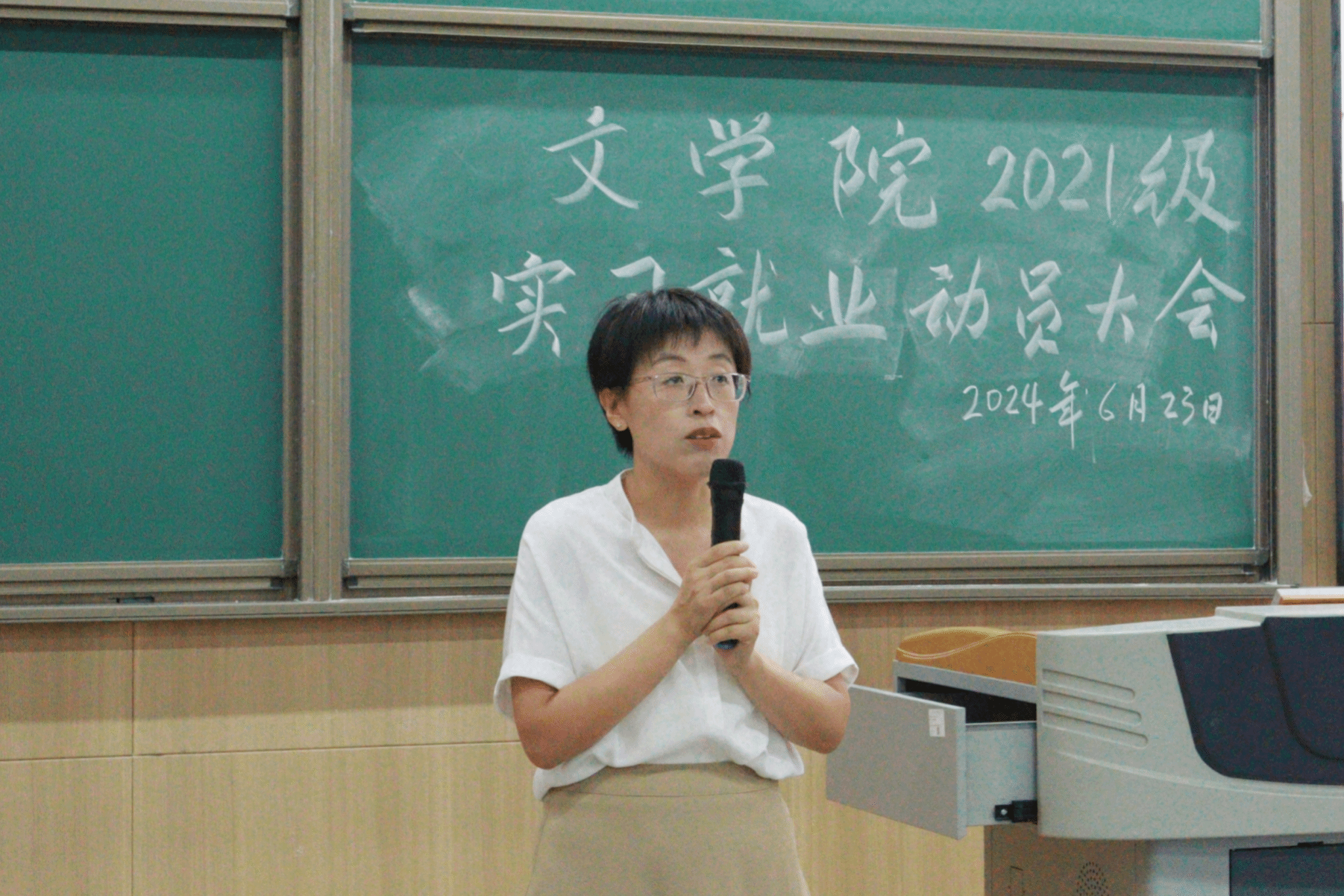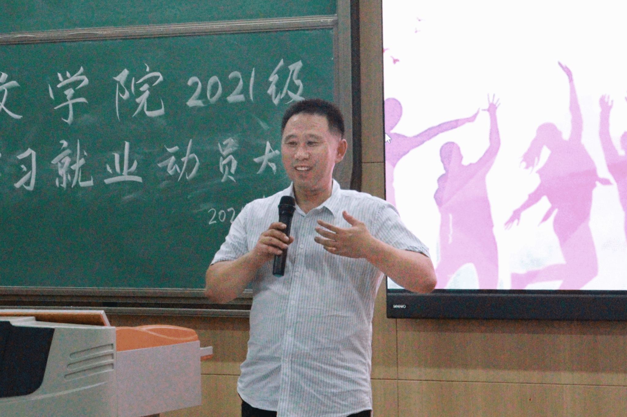 为帮助我院学生树立正确的择业观与就业观,提高其就业积极性,更好地实现从学生到教师的职业角色转变。6月23日晚上7点,我院于明德楼B区110、111教室举行“2021级学生实习就业动员大会”。本次会议由我院党委书记周艺,党委副书记、副院长梁明玉,党委副书记、纪委书记刘正丽,副院长于军民,院长助理王昕,学工办辅导员汤靓老师主讲,我院2021级全体学生参与。