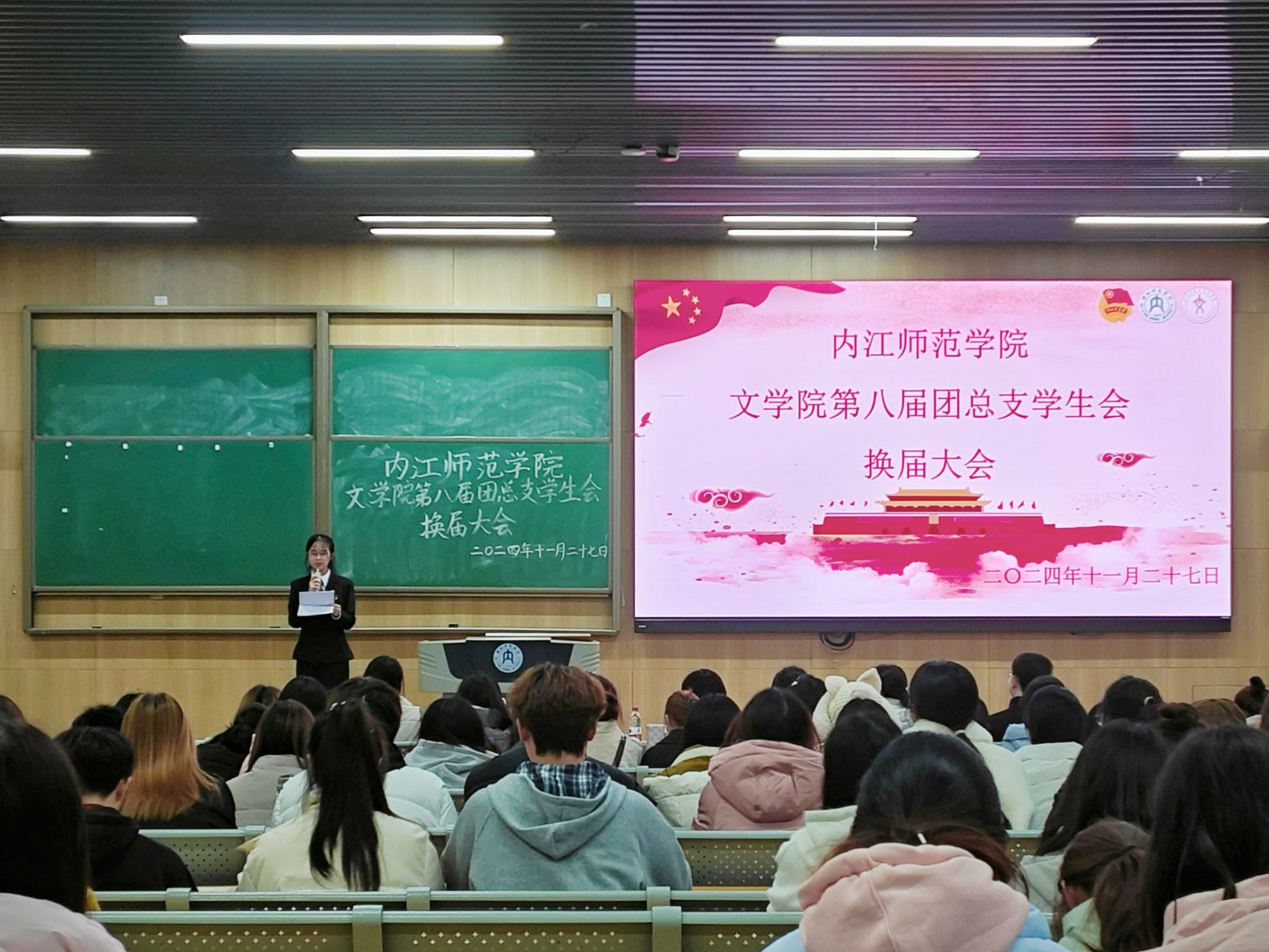 11月27日晚7时,内江师范学院文学院第八届团总支学生会换届大会于明德楼B区111教室隆重举行。大会旨在传承文脉,推陈出新,确保团总支学生会工作平稳交接,持续推进。