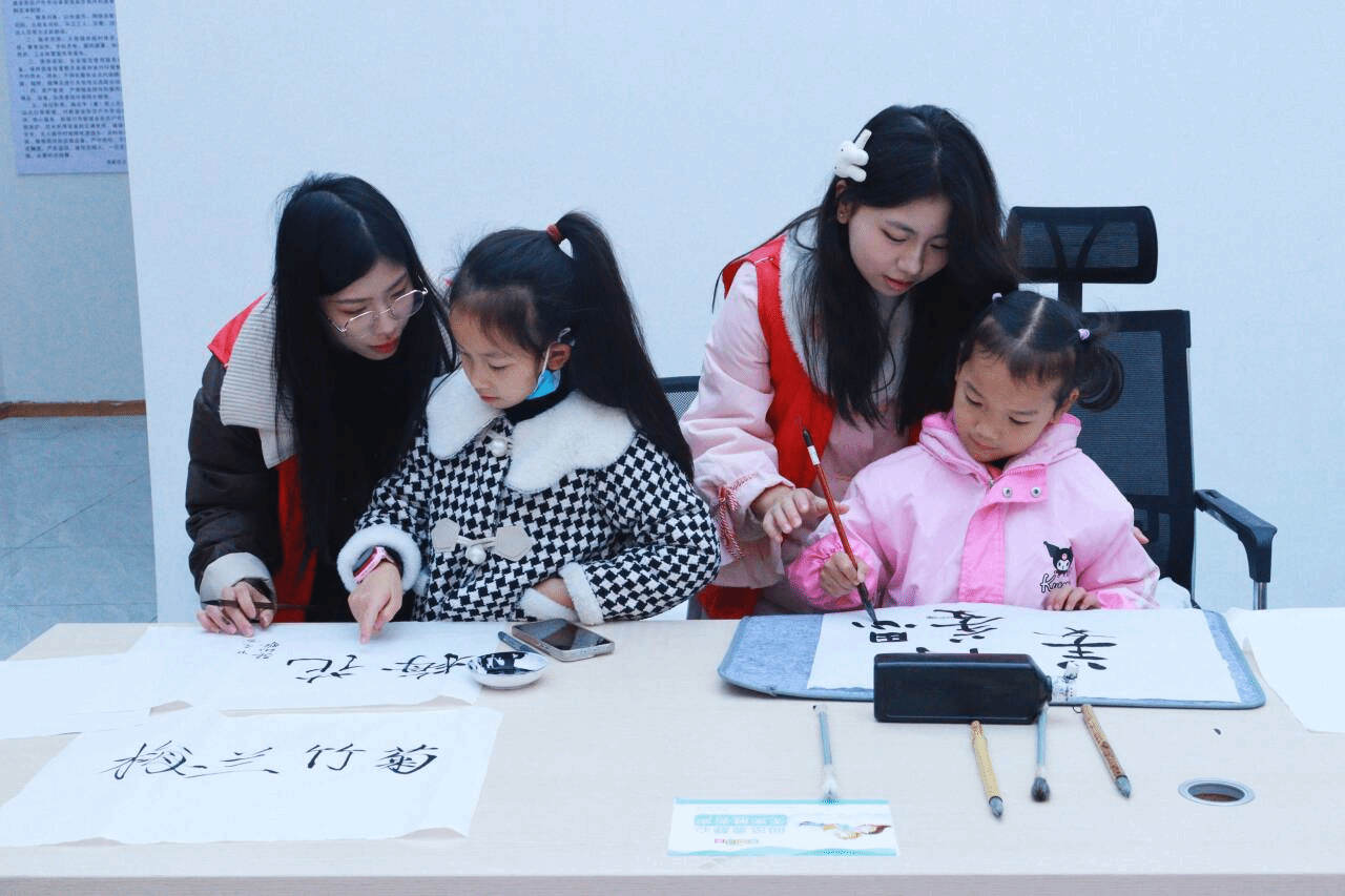 志愿者们精心准备了一系列互动体验,寓教于乐。小朋友们手握毛笔,在宣纸上挥毫泼墨,每一笔一划都是对中国千年传承的致敬。志愿者们还讲解了冬季流感预防的小贴士,增强了孩子们的自我保护能力,确保他们在欢乐中也能收获健康知识。随后,志愿者耐心指导小朋友们进行手工制作,一起折叠出五彩斑斓的纸花与生动活泼的小动物。