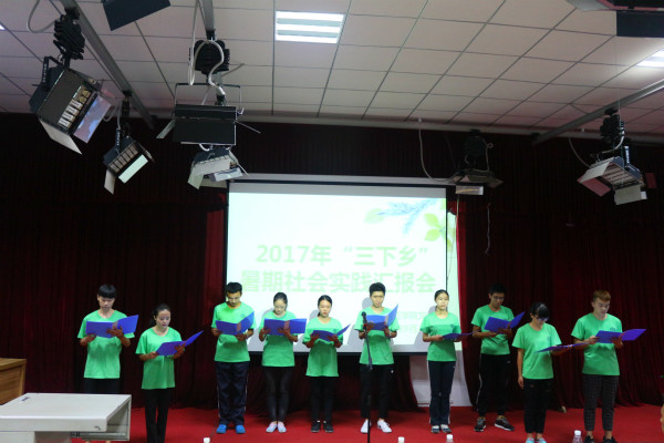汇报会接近尾声,各实践队代表进行了诗朗诵《青春与我同行》,在充满青春和激情朗诵声中,我院2017年“三下乡”暑期社会实践汇报会圆满落幕。
