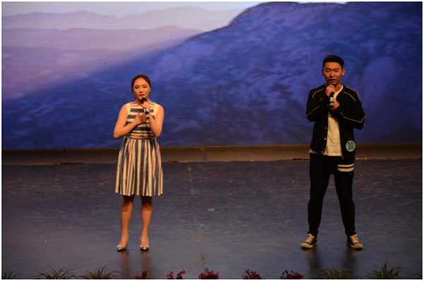 晚上七点,决赛正式开始。决赛现场的选手们以饱满的情感,稳健的台风,给听众展现形式多样内容丰富的赛事,给各位评委们留下了深刻的印象。参赛选手们有的以宁静柔婉的声音,呢喃了对家乡的喜爱与思念;有的用活泼、甜美的语调向众人展示了自己的希望与理想;有的以铿锵有力的声音向时代发出了青年一代的朝气与愿景。晚上九点,此次朗诵大赛进入最激动人心的时刻,评委打分并选出获奖者,最后为参赛选手做出了精彩的点评,为选手们提出了宝贵的建议,同时也指出了相应的不足之处,并充分肯定本次大赛的举办意义。我院两位参赛选手钟国敏、陶致达凭借一首激情澎湃、热情洋溢的《光的信仰》(原创作者:黄泽东,指导教师:张卫)赢得了现场观众的阵阵掌声,深受观众和评委的喜爱,并最终获得总决赛三等奖的好成绩。