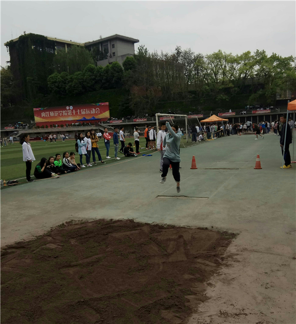 4月20日上午8点整,女子乙组跳远决赛在田径场准时开始,代表文学院参赛的是陈静、尹璨两名同学。