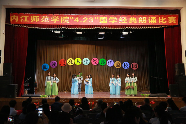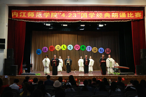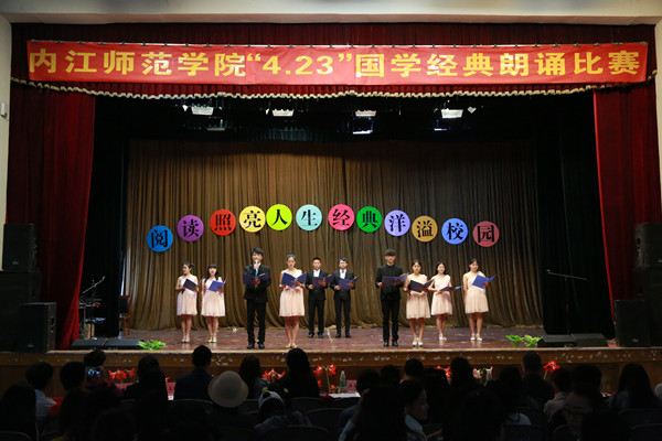 为迎接“世界读书日”,4月23日,由内江师范学院学生工作处联合图书馆主办,大学生读者协会承办的以“品国学经典,扬中国文化”为主题的国学经典朗读比赛在西区礼堂举办。全校16个二级学院代表队同台竞技,文学院代表队获得第二名。