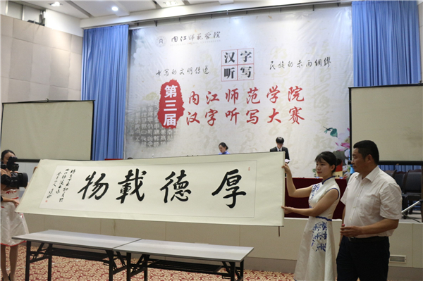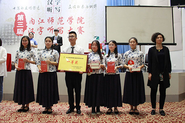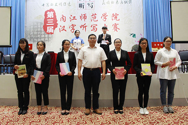 5月8日晚7点,由校语委办、党委学工部、团委主办,文学院承办的内江师范学院第三届汉字听写大赛决赛在第一学术报告厅隆重举行。文学院代表队与外国语学院代表队分别获得专业组和非专业组的第一名。