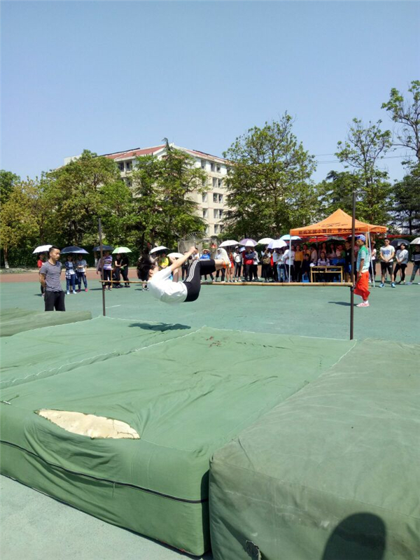 比赛正式开始前,参赛选手已经在一旁做好了准备,开始热身。“比赛正式开始!”随着主裁判一声令下,第一位同学像一道闪电似得划过我们眼前,然后身子一盈,轻松的跨过了1米2的栏杆。随后的选手也紧接而上,到了我院同学宋倩琳,只见她身手矫健,随着裁判员红色的小红旗起落,她一个箭步冲到横杆前,一个背挺双腿腾空而起越过横杆,划出一道漂亮的弧线。参赛的同学们表现越来选好,围观的同学也热烈的为他们鼓掌加油,很快到了我院喻娟同学比赛,她早早的做好了热身运动,抬腿,摆胯,原地跑,待前一位选手一结束她就顺势一跑,到栏杆处奋力一跃,飞跃横杆,完美落地,引得全场掌声连连。同学们“加油!加油!”的呼叫鼓励把比赛推向高潮。