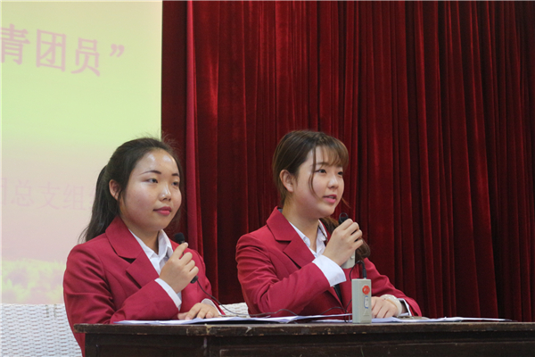 会中,来自2016级4班、8班团支书李清秀和杨思迪共同带领同学们学习了 “如何做好一名合格的共青团员”的微团课,并带领现场共青团员完成了作为共青团员的宣誓,并合唱《中国共产主义青年团团歌》。