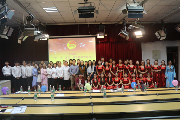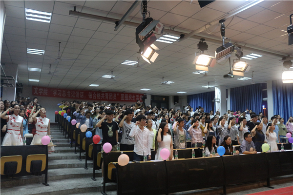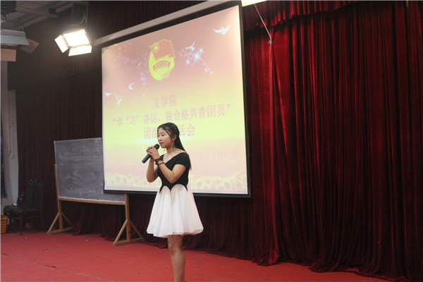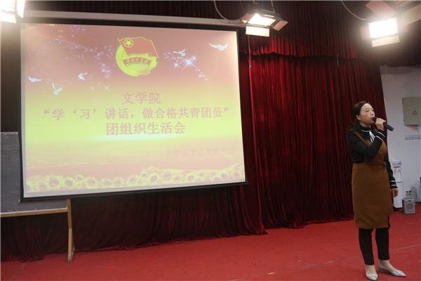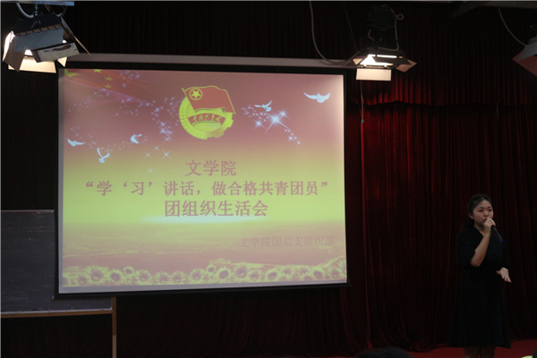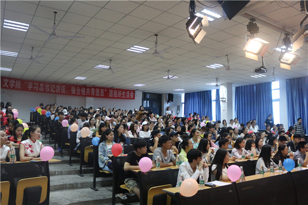 为深入学习全国高校思想政治工作会议和习近平总书记重要讲话精神,我院于2017年4月18日晚7点,在中文楼501室组织开展“学‘习’讲话,做合格共青团员”团组织生活会。文学院党总支副书记(主持工作)覃华艳,辅导员许小涛、陈怡君,各二级学院的学生干部等人观摩了此次团活动。本次活动由16级4班唐川洋、8班梁莹蔚主持。此次晚会到场团员总计262人,参演人员46人。