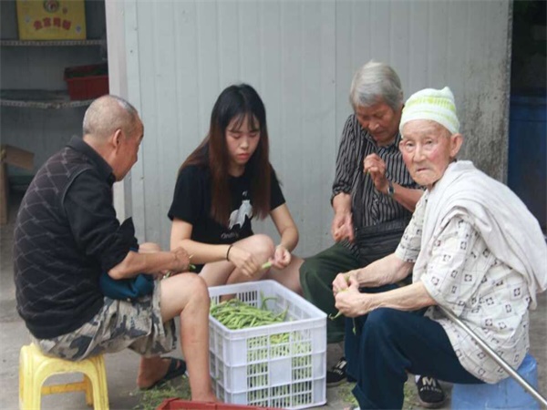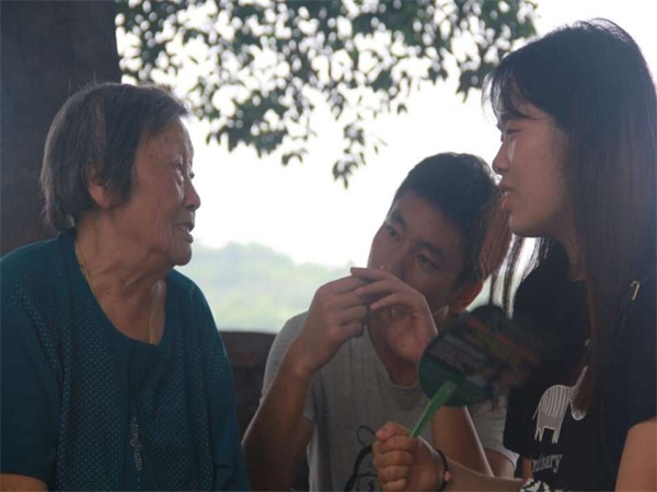 2016年7月17日,才早晨7点,太阳已蹿上房顶。但天气再炎热,也挡不住夕阳之家义务敬老实践队去托老院陪伴看望慈祥的老人们的热情。大家来到托老院,吃完温馨的早餐,队员周密与郑巍看见陈婆婆与两位老爷爷在帮食堂择四季豆,便赶紧过去帮忙。有老人在院子树荫下乘凉,有老人在房间里看电视,也有老人坐在凉蓬下打瞌睡。酷夏天气里,老人容易疲惫,队长袁苗在活动开始前强调,实践队所有的人来到这里,尽管由于客观条件的一些限制,大家不能开展更丰富多样的活动,但至少要认认真真地陪着老人,尽力和他们交流,让他们看到生活可以多点不一样的色彩。队员们来了一周的时间,已经对托老院比较熟悉了,便自发去不同地方陪老人聊天。在树荫下乘凉的一些老人坐在比较远的地方,几个队员就主动过去陪他们闲聊。85岁的曾婆婆年事已高,但思维依旧灵敏,说话毫不费力,她与队员们聊了很多。曾婆婆表示,自己也有一位与大家年纪相仿的孙女,但孙女平时忙于学习与娱乐,很少打电话给她。在托老院的日子虽然比较舒适,但难免落寞,有时很希望家人能够多关心自己,所以常常忍不住主动打电话给家里人。同时她感叹道,大家能在暑期放弃休息的时间来义务敬老,放下手机,耐心地陪老年人说说话,她非常感动。