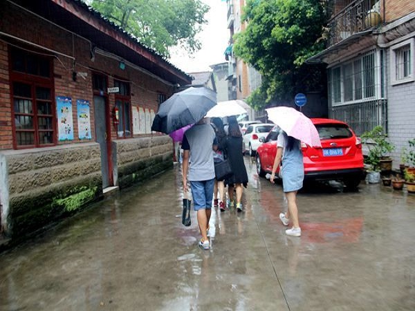 2016年7月14日早晨7点20分,“探访内江甜文化”实践队一行九人在学校东区门口集合,统一前往内江市档案局。虽然今天的天气状况不太好,下着中雨,但是实践队成员们仍然保持着兴奋的状态,风雨无阻的前往目的地。
