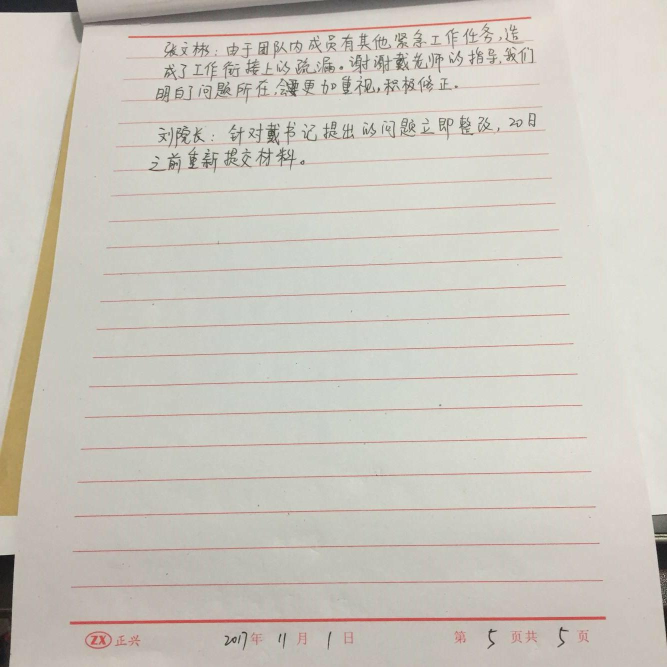 张:由于团队内成员有其他的紧急工作任务,造成了工作上衔接的疏漏。感谢戴老师的指导,我们明白了问题所在,会更加重视,积极修正。