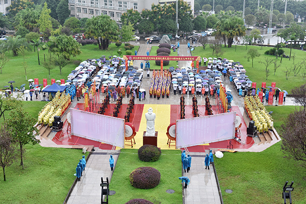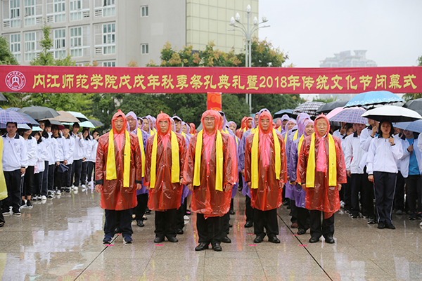 祀先师,九域黉宫崇仁善;弘儒学,千秋竹帛写辉煌。9月28日是中国伟大的思想家、教育家孔子诞辰2569年。上午,我校戊戌年秋季祭孔典礼暨2018年传统文化节闭幕式在课间举行,校党委副书记、校长张志远,党委副书记史仕新,副校长黄辉、赵明、刘博、吴开腾,以及近千名师生代表在雨中致祭于先师像前。