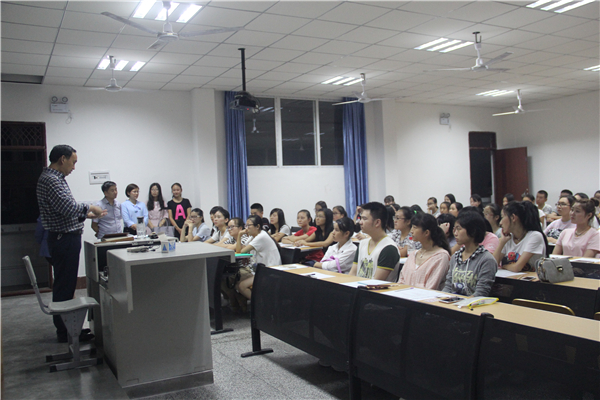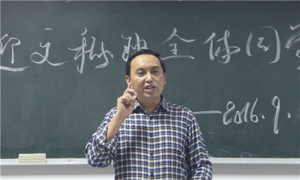邓国军院长一行首先来到302教室与2016级2班的同学见面,邓院长对大家来到文学院求学表示热烈欢迎,并就对新生如何度过大学生活提出了三点建议:“第一是要做好规划,从每一天的时间安排到人生规划,都要有科学的安排。淡化唯分数论,制定职业规划,提高综合素质与情商,同时也要注重学业,充实自我,做好考研的准备。第二是要自我管理,遵守法律,不要越过道德与法律的红线,不一定成名成家,但一定要成人。第三是要有集体荣誉感。”邓院长侃侃而谈,当讲到大学里的恋爱问题时,他风趣幽默地说道要注意时机,合理恋爱。同学们在欢笑之余,也体会到老师们的良苦用心。接下来邓院长一行对其他新生班级班会进行了走访,每到一个班级,都与学生进行了亲切交流。
