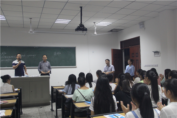 随着迎新工作的圆满结束,文学院又迎来了一群朝气蓬勃、充满活力的新同学。为了让2016级新生更好更快地融入大学新生活,9月4日晚7点,文学院2016级各新生班在中文楼召开了入学第一次班会。文学院院长邓国军、副院长刘云生、党总支副书记刘华俊到班会现场看望新生并与新生亲切交流。