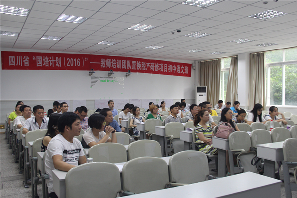 7月18日上午8点30分,来自内江六中的省骨干教师、中学高级教师陈让先老师为初中语文班的学员讲“初中语文教学减负增效的策略”。