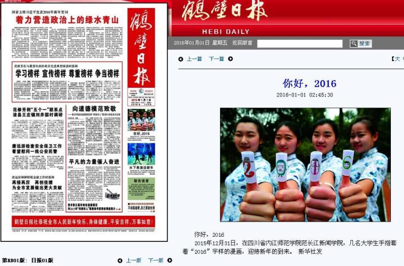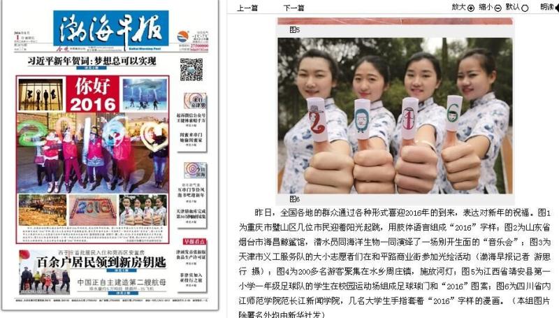 搜狐转载新华社“你好,2016”迎新年组图之我院学子迎新活动
