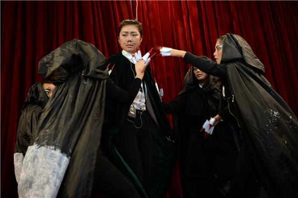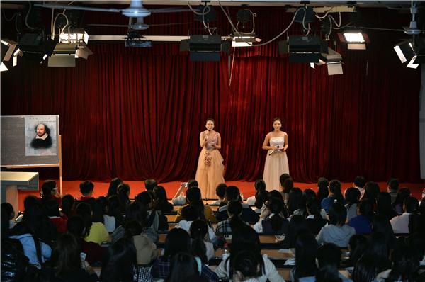 这是一首关于爱情的诗,这也是一首对欲望、生死、时间的本性有着深刻思索的诗。《十四行诗》作为开场,便引领着观众打开了通往内心深处的大门,黄红梅和胡斌斌两位同学分别用中文和英文吟诵着这首经典。而经典总是具有那种让人从感动到为之奋不顾身的魔力,来自13级2班的胡斌斌同学为了排练好莎翁戏剧甚至在朗诵即将结束时晕倒在场上,这种精神可亲可敬。