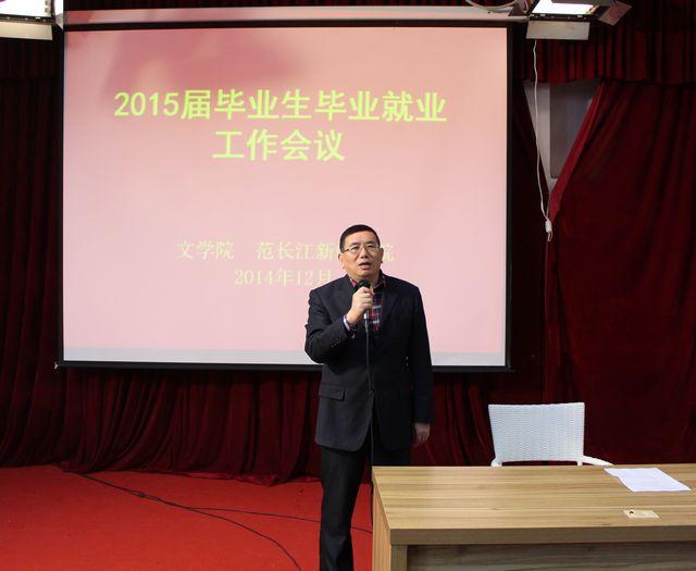 为进一步落实我院2015届毕业生毕业就业工作,12月3日上午10点,我院在中文楼501教室召开毕业就业工作会议。文学院、范长江新闻学院院长邓国军,党总支书记翁礼明,副院长刘云生、高佳,党总支副书记王英,全体辅导员,毕业班班以及2015级所有毕业生参会。会议由党总支书记翁礼明主持。