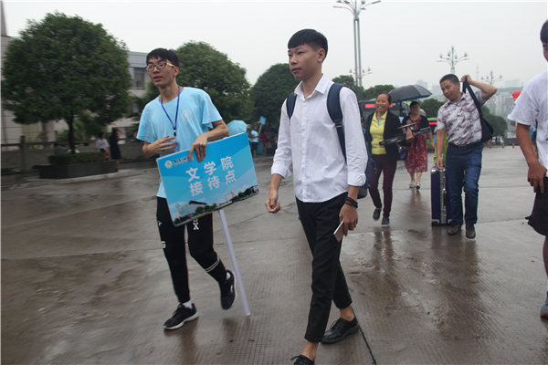 在迎新过程中,处处彰显文学院老师、学子乐于助人、团结友爱、甘于吃苦的精神。院长邓国军,副院长刘云生,党总支副书记刘华俊,辅导员康超、许小涛及各新生班班主任也待命在新生大本营,为新生解答疑难困惑。迎新过程中,我院学生会科技实践部成员程智同学,全程带领新生走完报道流程,在报道的过程中,程智同学主动帮新生提行李;在两天半时间的忘我接待里,她错过了所有供餐时间点,而她总是以一句“等不忙了我自己解决”,而这句话的内涵却让我们的新生、家长和老师的心情久久不能平复。