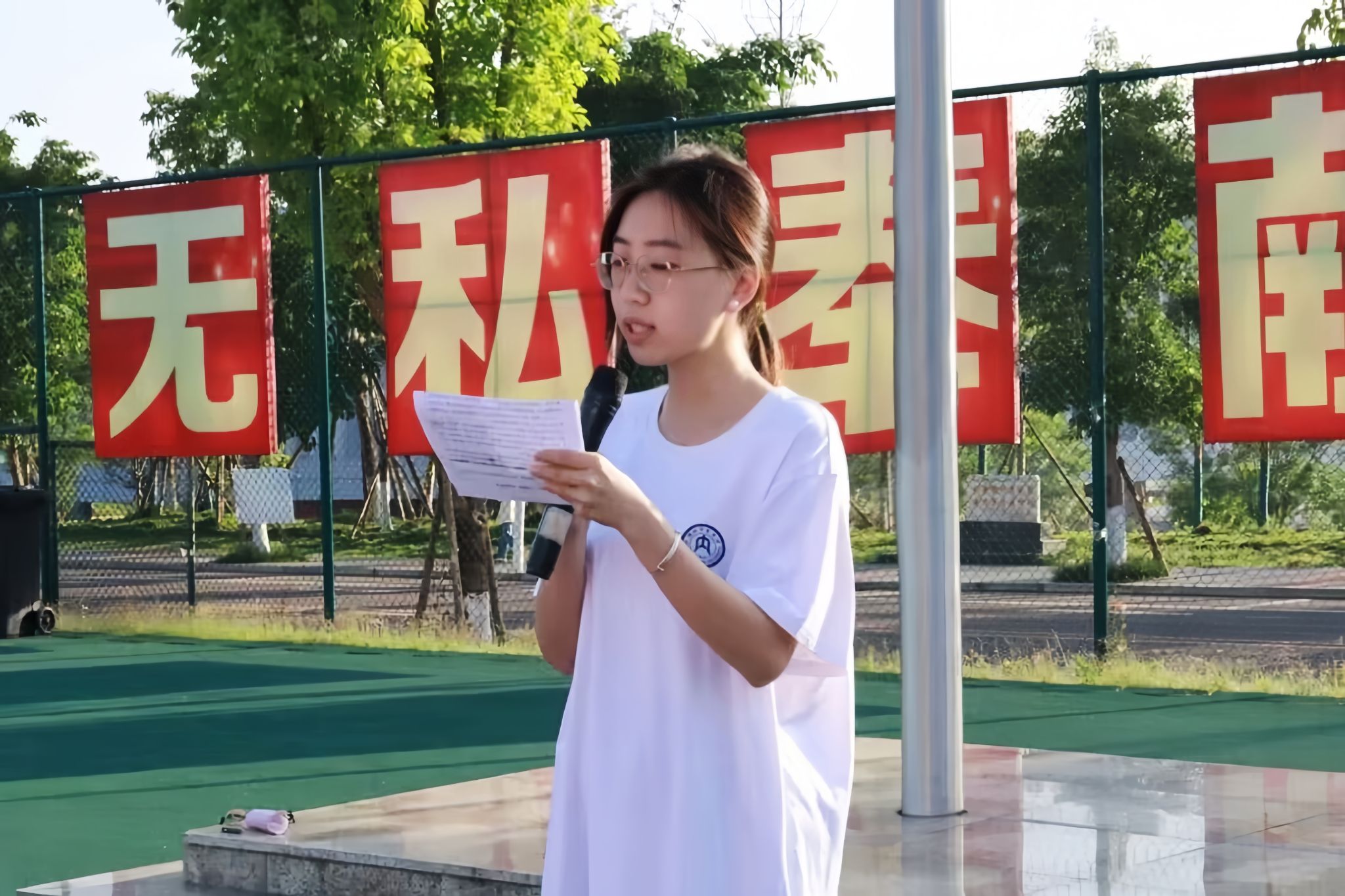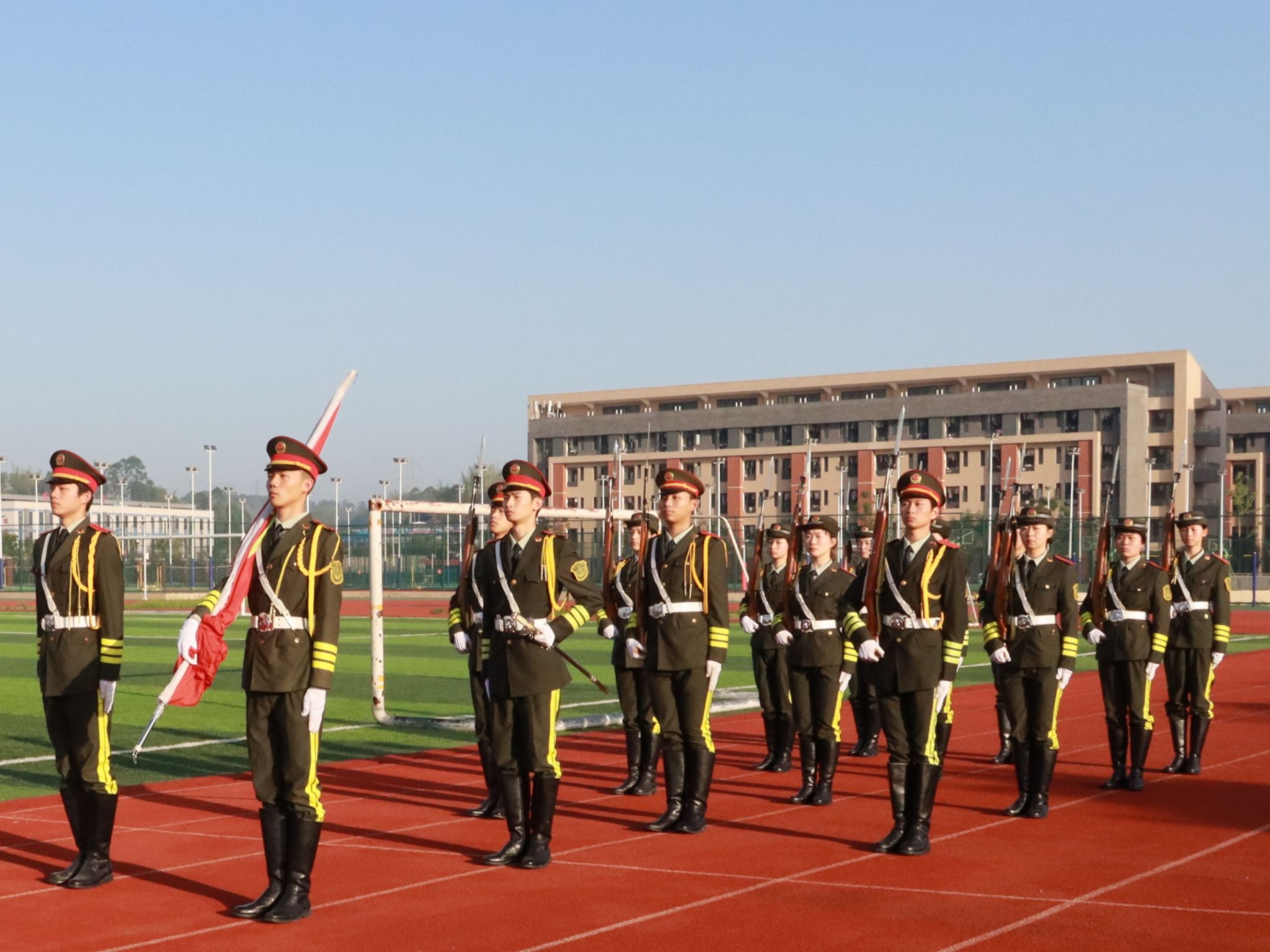 5月13日早上7点25分,我院于第五运动场田径场举行了第十三周升旗仪式。本次升旗仪式由我院学工办副主任金夏老师,学工办辅导员汤靓、雷业老师,我院2021级、2022级、2023级全体同学共同参与,文苑之声舒晨欣主持,我院2021级4班邓嘉馨同学作国旗下讲话。