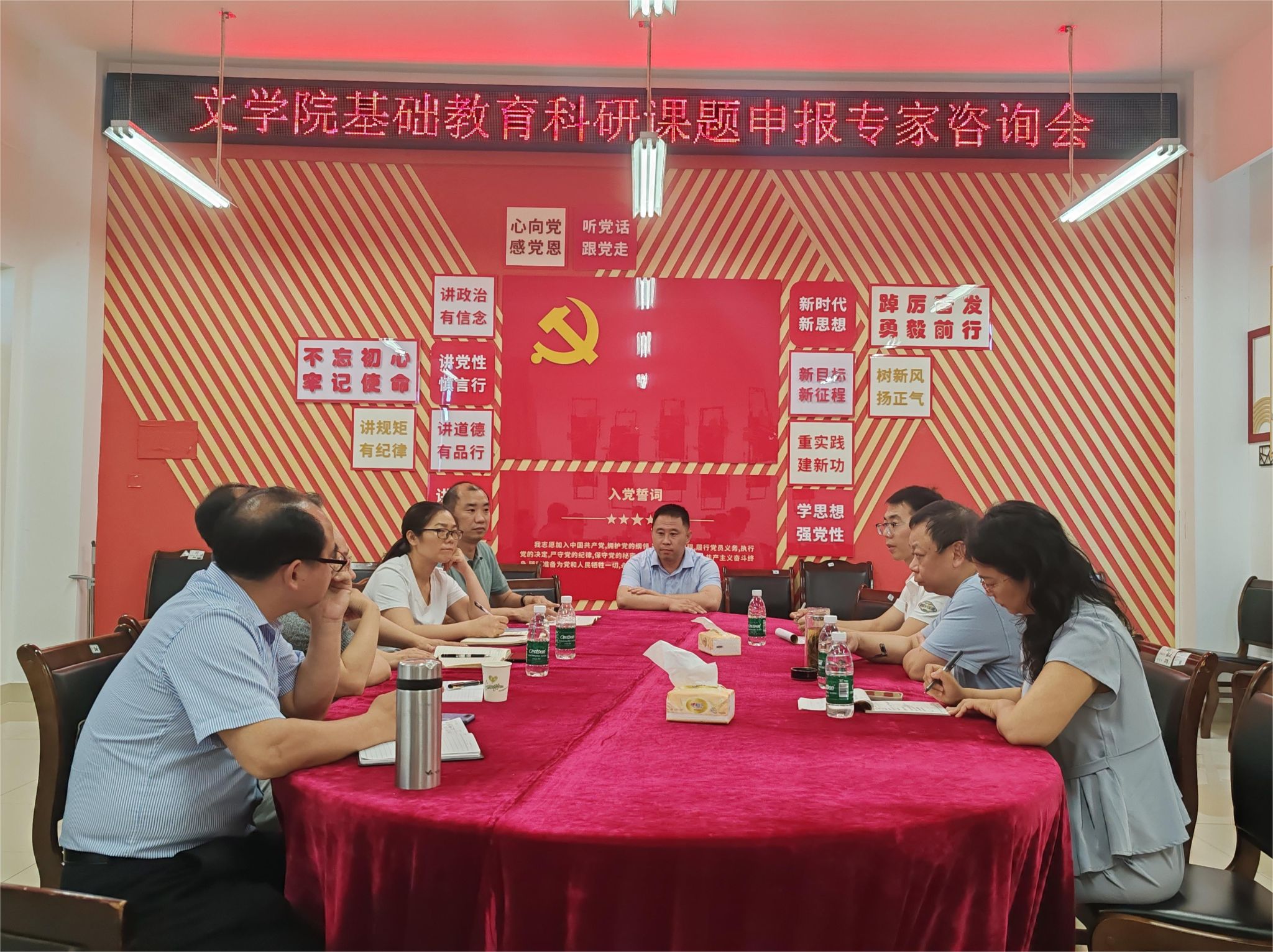 为更好地培养高素质职前师资,提升我院基础教育科研水平, 5月24日,我院在弘文楼506会议室召开基础教育科研课题申报专家咨询会。会议邀请教育部基础教育教学指导委员会语文教学专委会副主任何立新老师作专题辅导。文学院党委副书记、副院长(主持工作)梁明玉,副院长于军民以及语文教学法教研室全体教师参加会议。